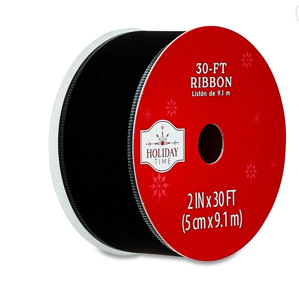 Add a touch of elegance and festive cheer to your holiday decor with this Holiday Time Christmas Velvet / Fuzzy Wired Black Ribbon. Measuring 2 inches in width and 30 feet in length, this ribbon spool is perfect for creating beautiful bows and other decorations for your home or gifts. The wire-edged design ensures that the ribbon maintains its shape, while the velvet and fuzzy material adds a soft and cozy feel. The black color and solid design of this ribbon make it a versatile choice for any Christmas project. Whether you're a seasoned crafter or just starting out, this ribbon spool is sure to inspire your creativity and add a touch of holiday magic to your home.