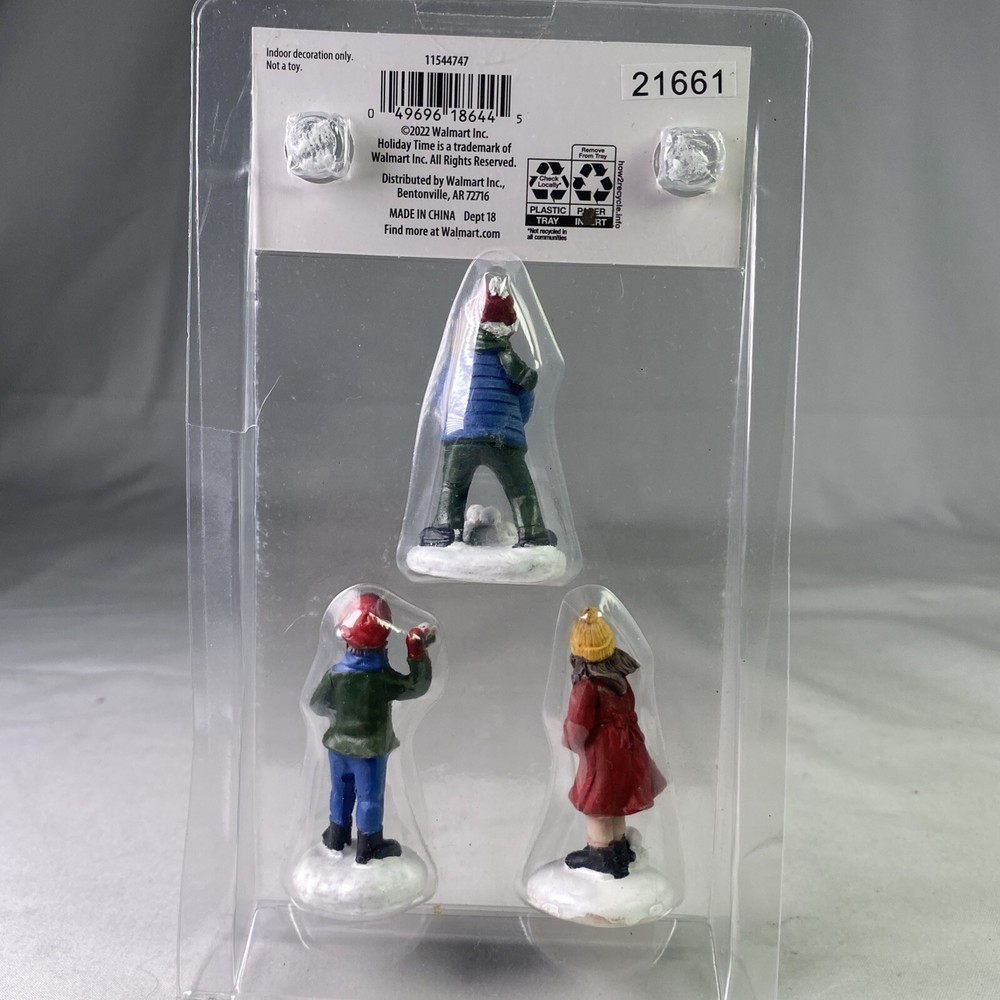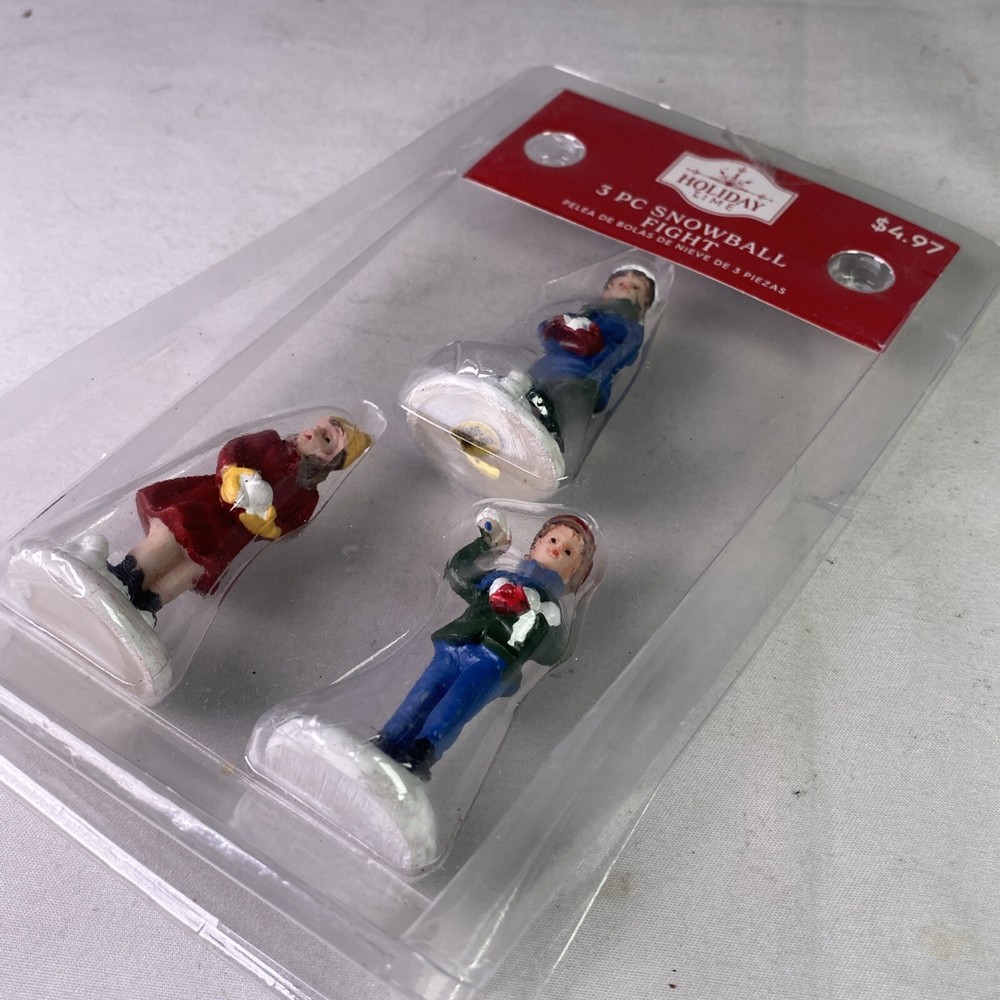 Holiday Time Christmas Village 3 pc Children Figurines Snowball Fight In Package