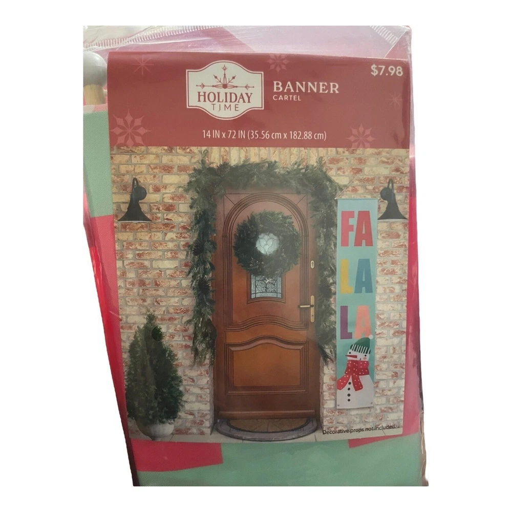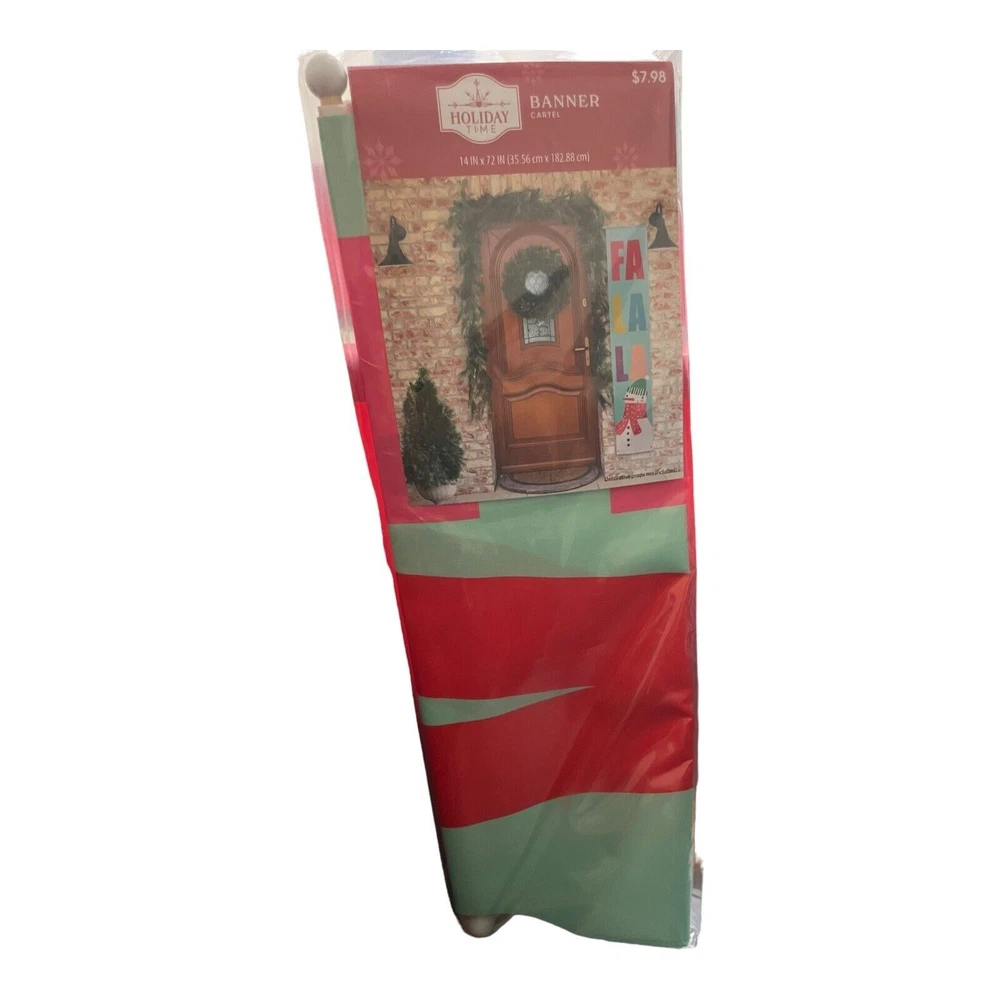 Holiday Time FA LA LA & Snowman Hanging Banner Christmas Door Decor 14" x 72"