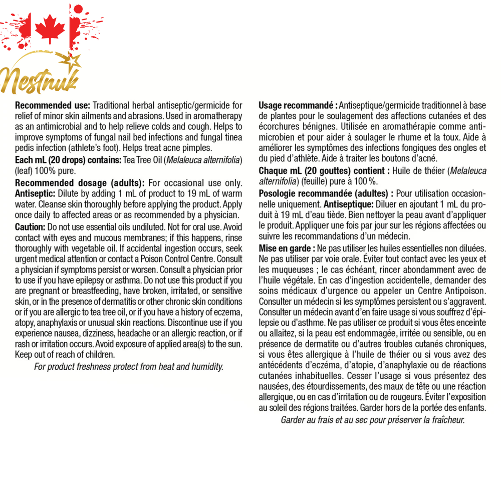 "We prioritize freshness by sourcing products only after receiving orders. With 1–3-day processing, every item is handled with care and quality. Shop confidently, knowing you’re always getting fresh, hand-selected goods!" ***Note: The appearance may vary depending on the manufacturer. ** Holista Tea Tree Oil – 100% Pure Herbal Antiseptic | 50 mL (1.69 fl oz) | Made in Canada 🇨🇦 | Free Shipping 🚚 Natural First-Aid Essential! Holista Tea Tree Oil is a 100% pure essential oil extracted from the Melaleuca alternifolia plant. This versatile herbal antiseptic offers natural relief for minor cuts, acne, insect bites, fungal infections, and other common skin issues. It's a must-have for every first-aid kit. 🌿 Key Features & Benefits 100% Pure Tea Tree Essential Oil Antiseptic, Antimicrobial & Antifungal Helps with Acne, Dandruff, Cuts, Fungal Infections Soothes Insect Bites and Minor Skin Irritations Traditional Herbal Remedy – Non-Resistant to Bacteria Extracted via Steam Distillation to Preserve Potency Use for Natural Surface Disinfection or Personal Care Compact Bottle – Great for Travel or First-Aid Kits 🧪 Product Details Volume: 50 mL (1.69 fl oz) Source: Steam distilled from Melaleuca alternifolia leaves No added preservatives, fragrances, or additives External use only Made in Canada 🧴 Common Uses Minor Cuts & Abrasions Acne Treatment Insect Bites Athlete’s Foot, Nail Fungus, and Yeast Infections Dandruff Relief Natural Surface Cleaner Insect Repellent ⚠️ Directions & Warnings For external use only Always dilute before applying to the skin. Avoid contact with the eyes and mucous membranes. Keep out of reach of children. Discontinue use if irritation occurs. Store in a cool, dry place away from sunlight 📦 What’s Included 1 x Holista Tea Tree Oil – 50 mL (1.69 fl oz) 🚚 Shipping Information 📍 Ships from Canada 🇨🇦🇺🇸 Free shipping to Canada & the U.S. ⏱ Orders processed within 1–3 business days 📌 Please follow the exact specifications shown. Please refer to the product description for details. 📦 Actual product packaging and materials may contain more information and details than what is shown. Always read labels, warnings, and directions before use.