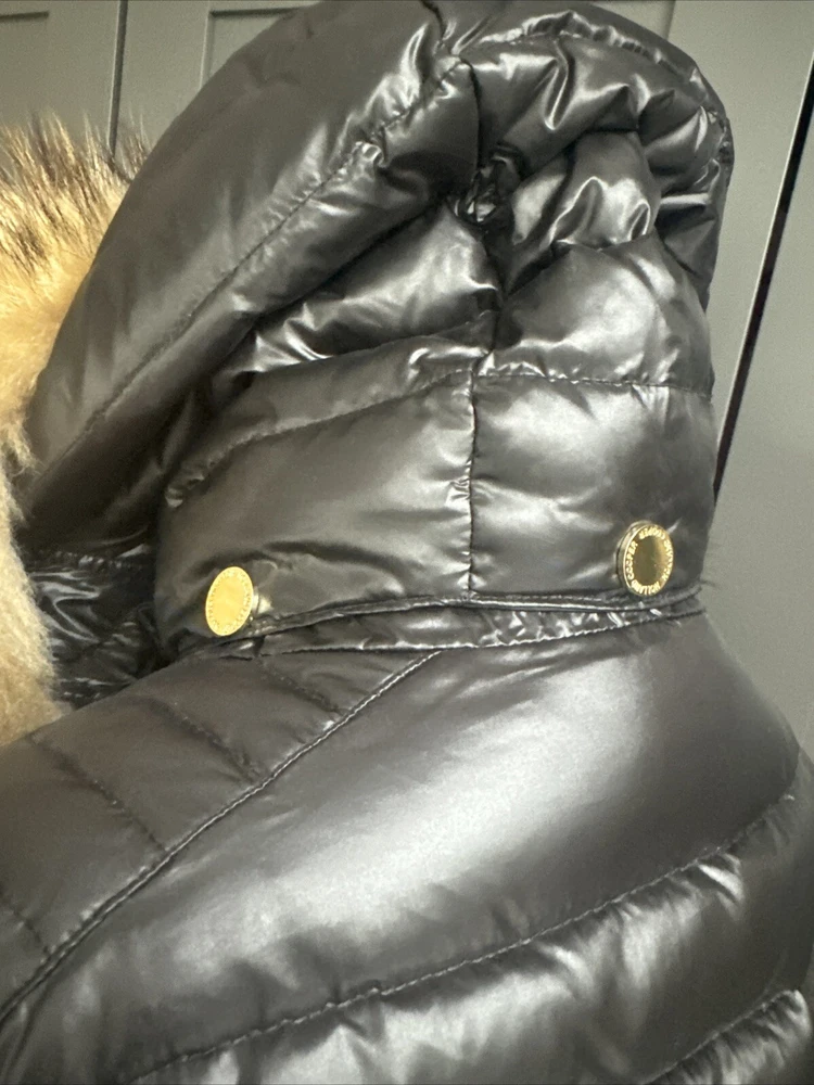 Holland Cooper coat Very good condition - bit bobbley on the bottom of the stretchy panels but not that bad, and rest of the coat is a lovely condition Size XS, fits a 6 nicely, should fit an 8 if you have small hips/waist, the stretchy bottom of the coat is the smallest part. Real fur, trim and also hood are removable