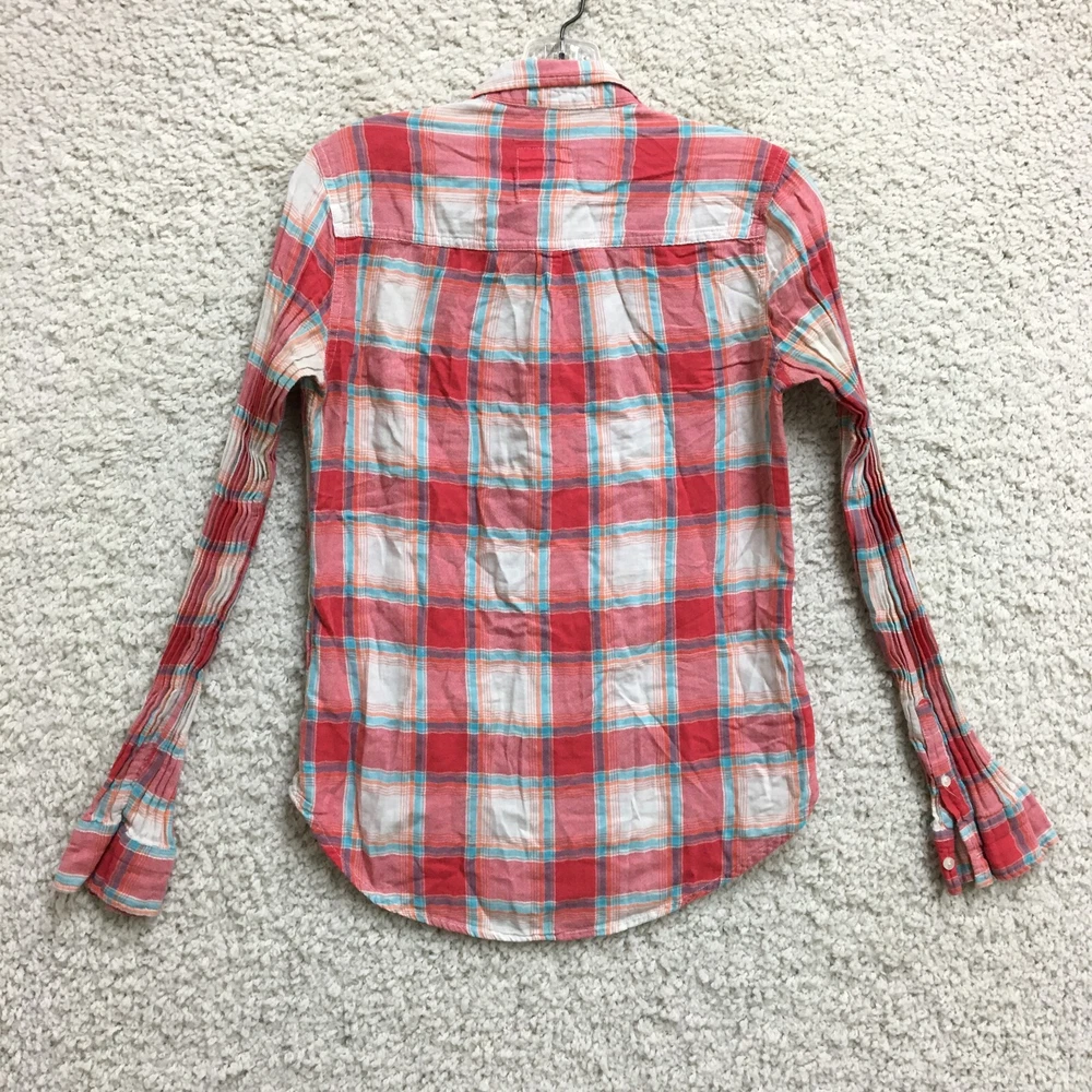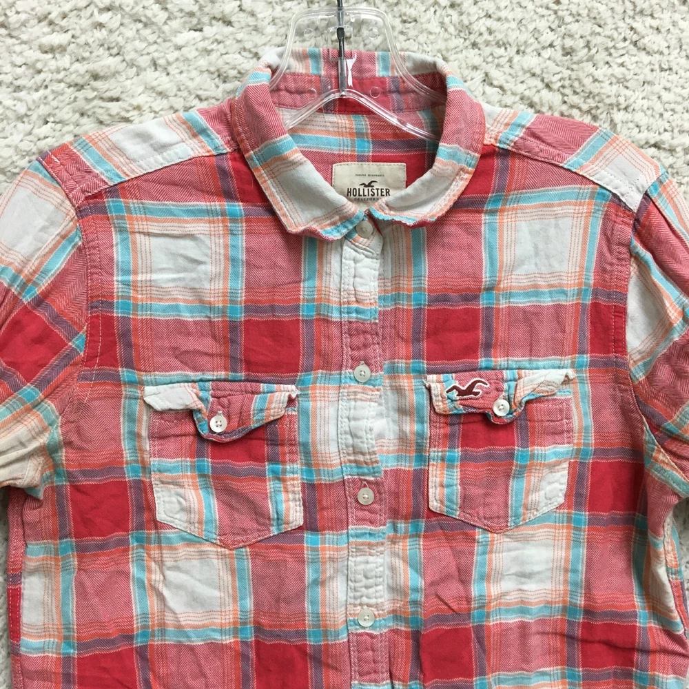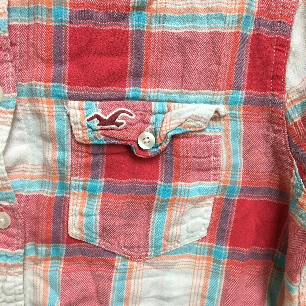 Hollister Button Up Shirt Small Adult Red Plaid Long Sleeve Pockets Casual Women