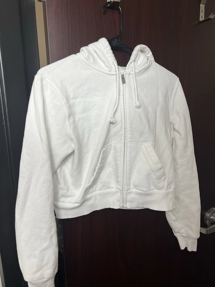 Hollister Cropped Hoodie Zip Up White S. Condition is Pre-owned. Shipped with USPS Ground Advantage.