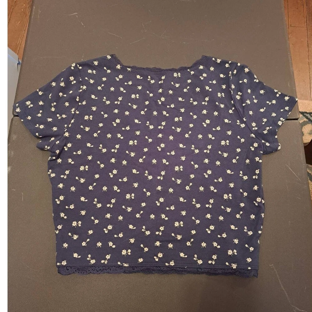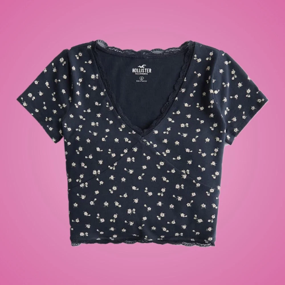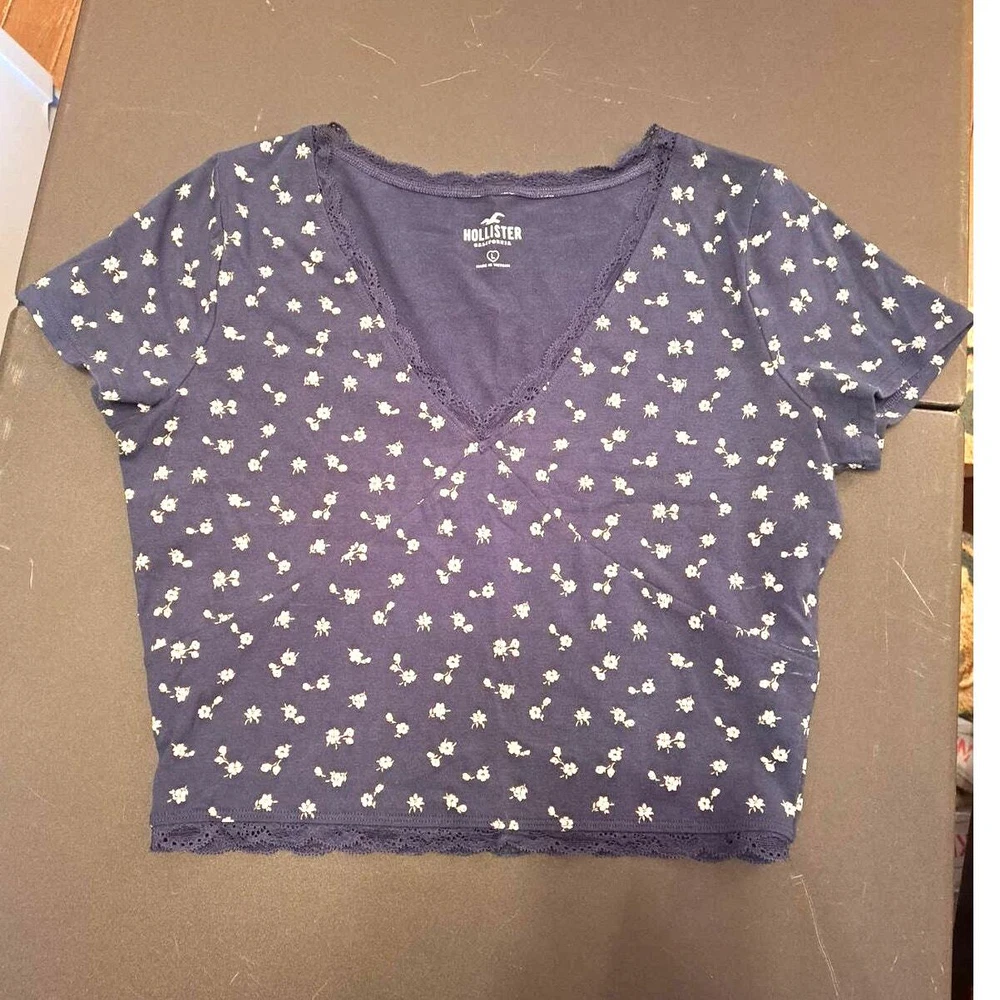 Hollister Dark Blue Lace Trim V-neck Baby Tee Size Large. New without tags. Will ship fast and with care!