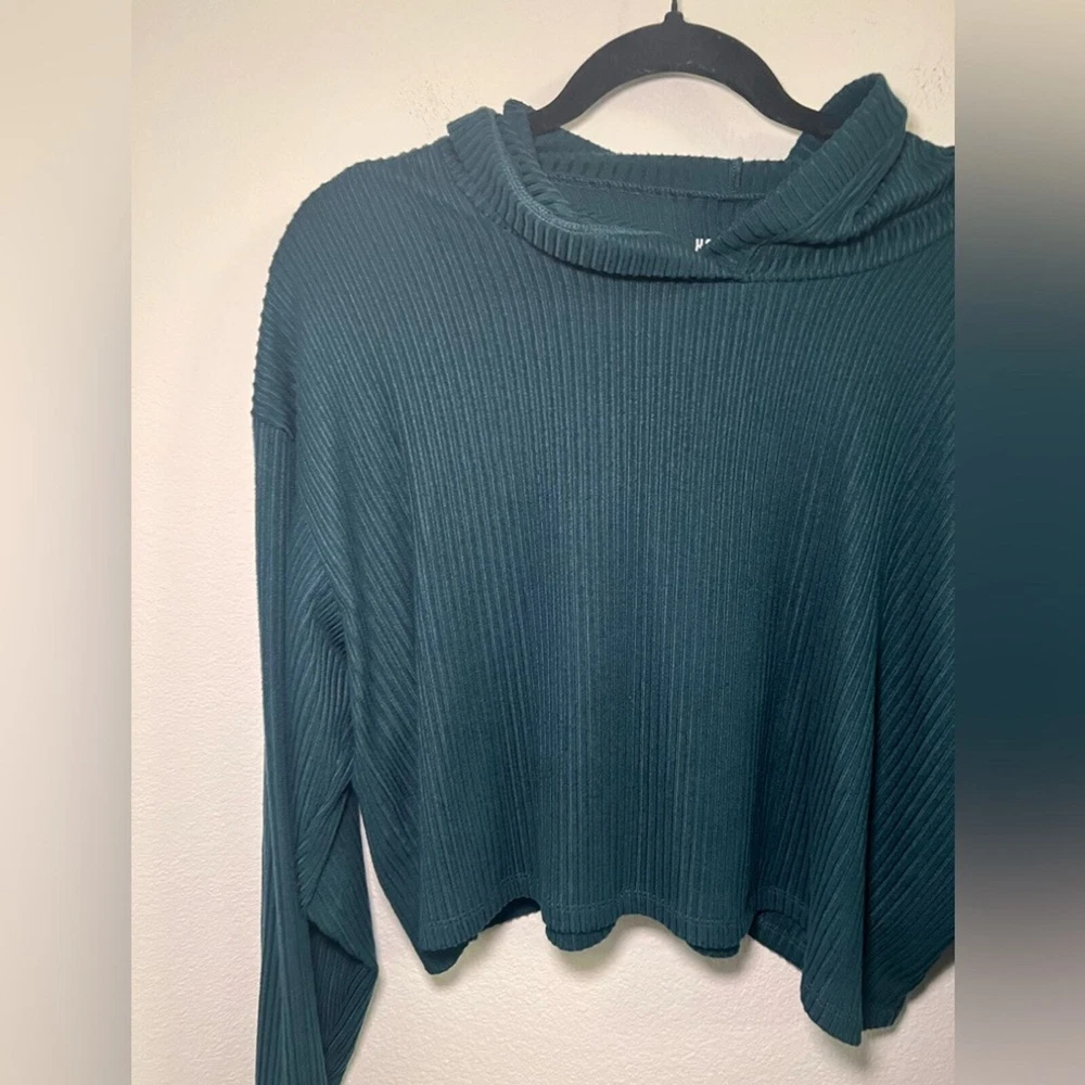 Hollister Green Long Sleeve Mock Neck Cropped Sweatshirt