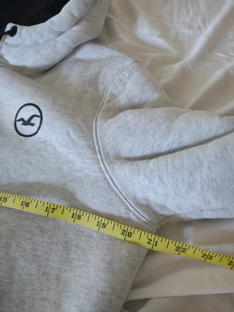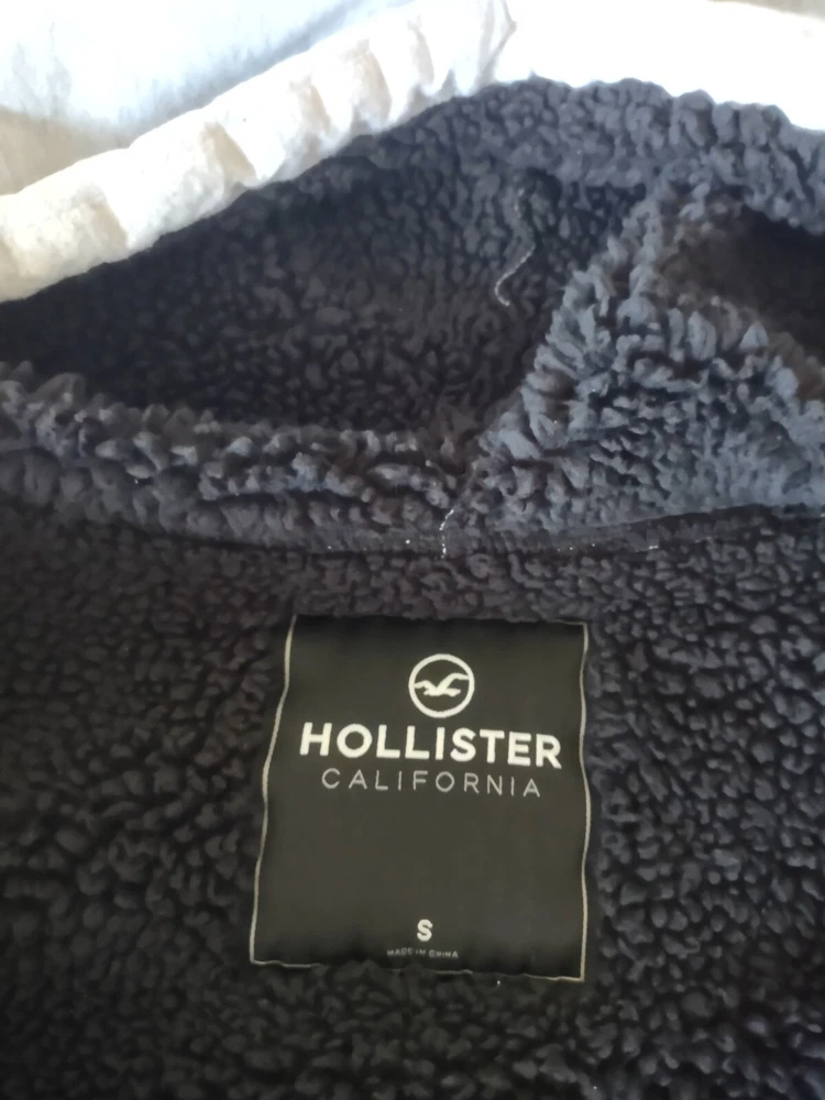 Hollister Hoodie/Jacket Sherpa Lined Mens Small Full Zip Gray/Black Warm Comfy Measurements in pictures are pit to pit and full-length. Excellent pre-owned condition