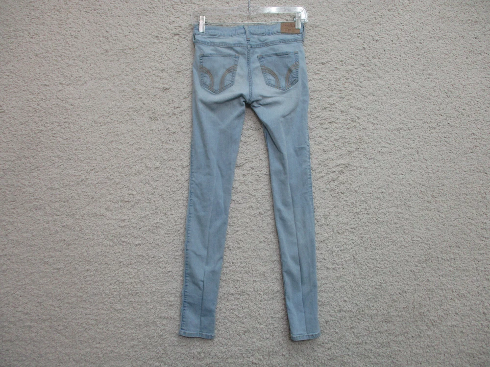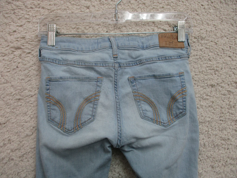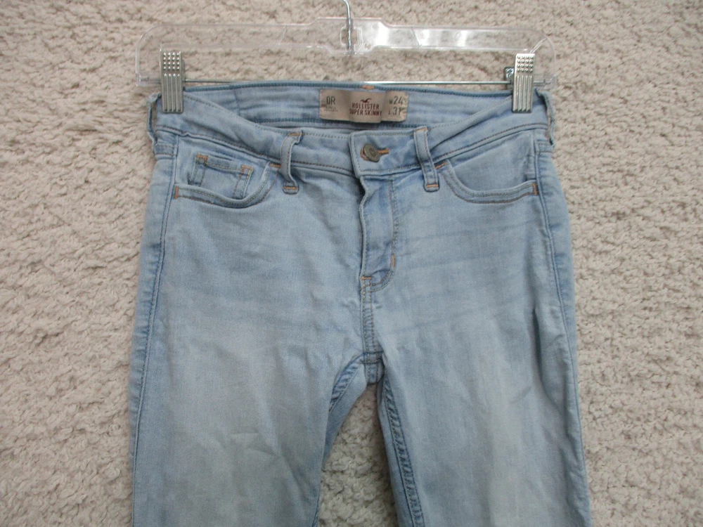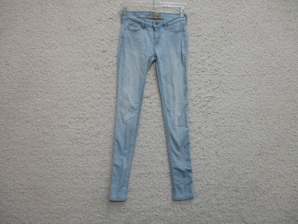 Hollister Jeans 0R Womens Blue Denim Mid Rise Super Skinny Stretch Casual Logo