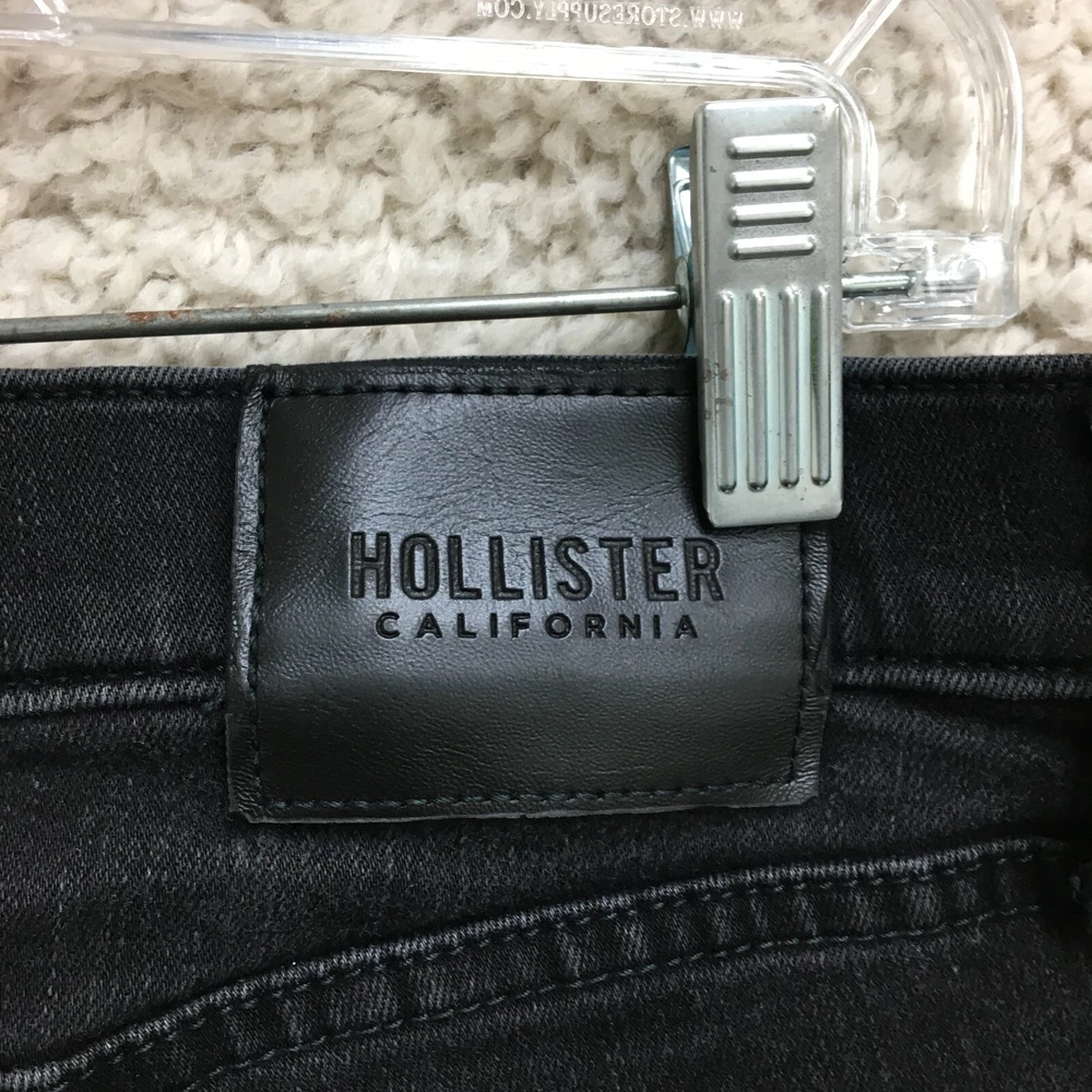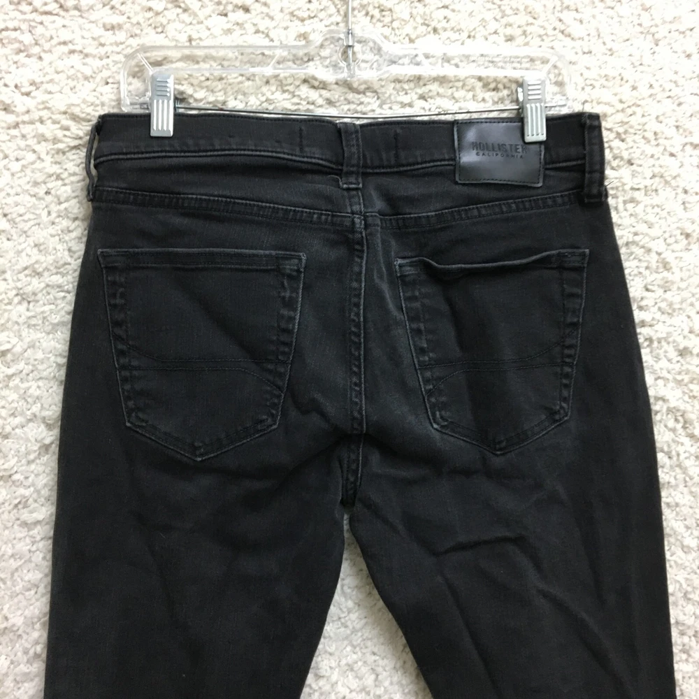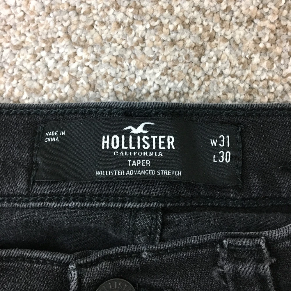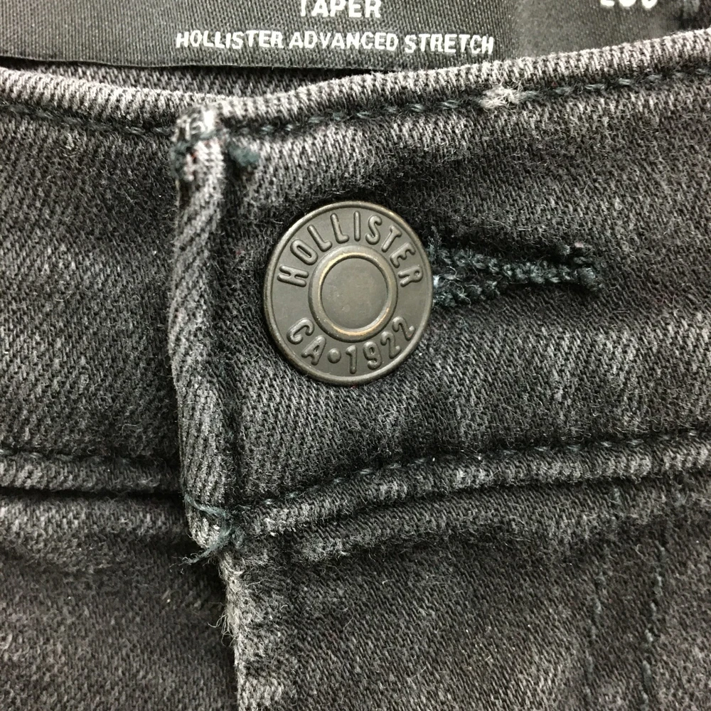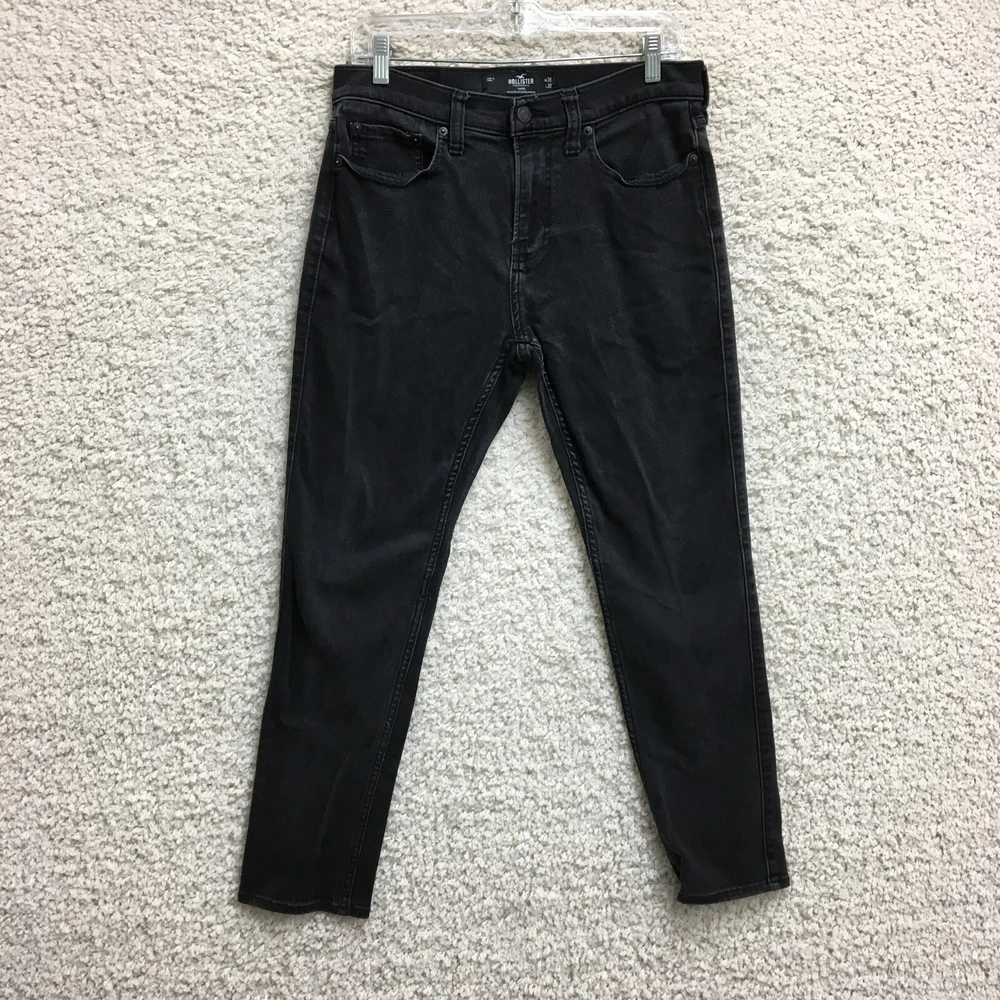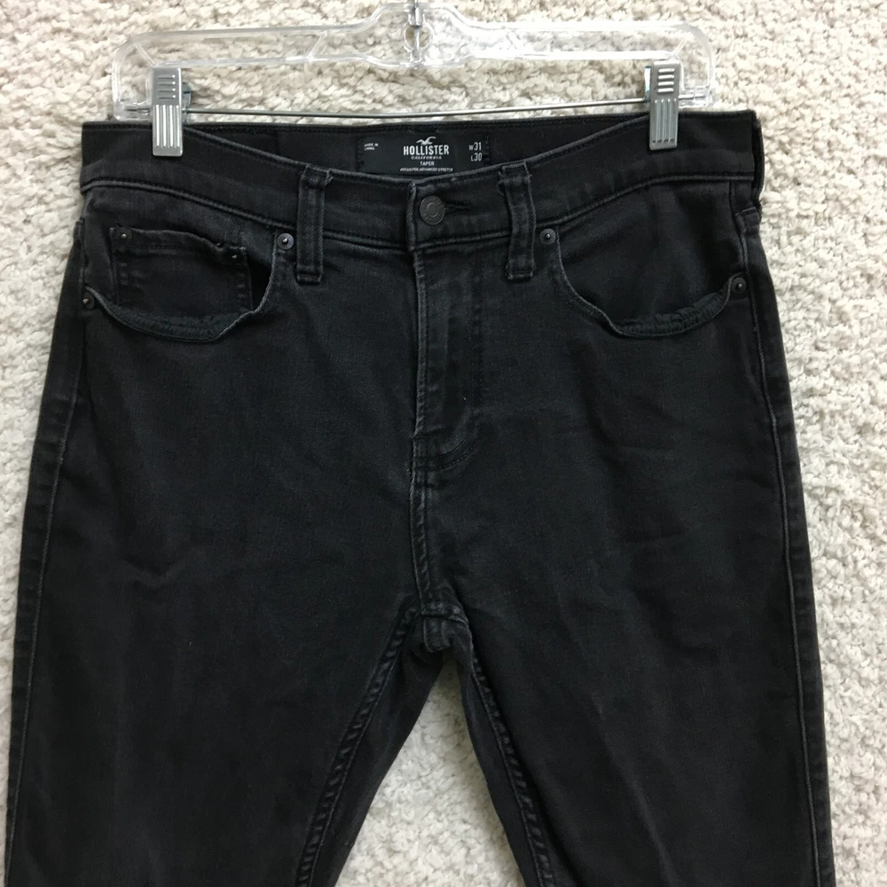 Fit: Regular gtin13: Does Not Apply Style: Tapered Brand: Hollister Color: Black Pocket Type: 5-Pocket Design Type: Jeans UPC: Does Not Apply Pattern: Solid Size Type: Regular Size: 31 Accents: Button, Logo Theme: Preppy, USA Fabric Wash: Dark Closure: Button, Zip Season: Fall, Spring, Summer, Winter Rise: Mid (10-12 in) Inseam: 28 in Garment Care: Machine Washable Country/Region of Manufacture: China Fabric Type: Denim Features: Breathable, Comfort, Stretch Waist Size: 31 in Seller Notes: “Very Good Used Condition. Please, See Pictures for Full Condition and Measurements.” Department: Men Material: Cotton, Cotton Blend, Polyester