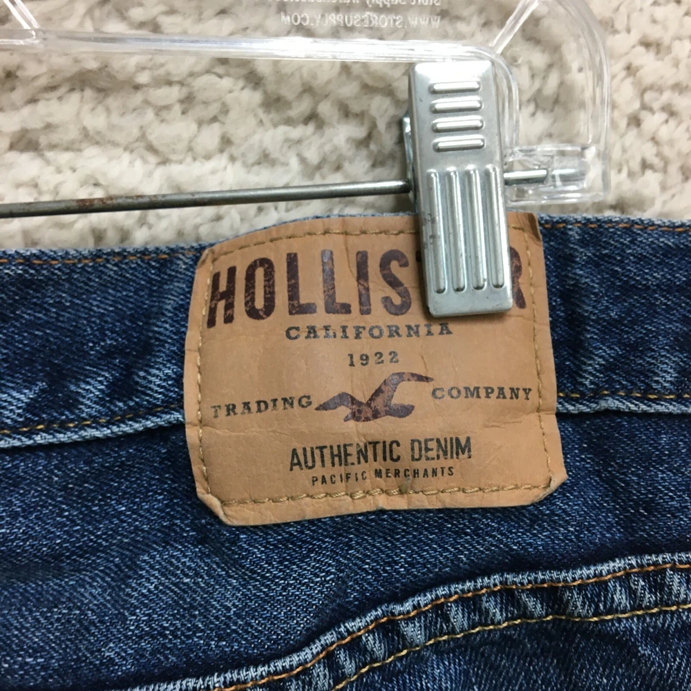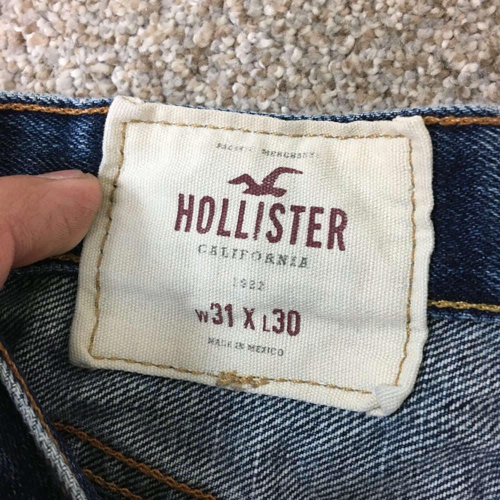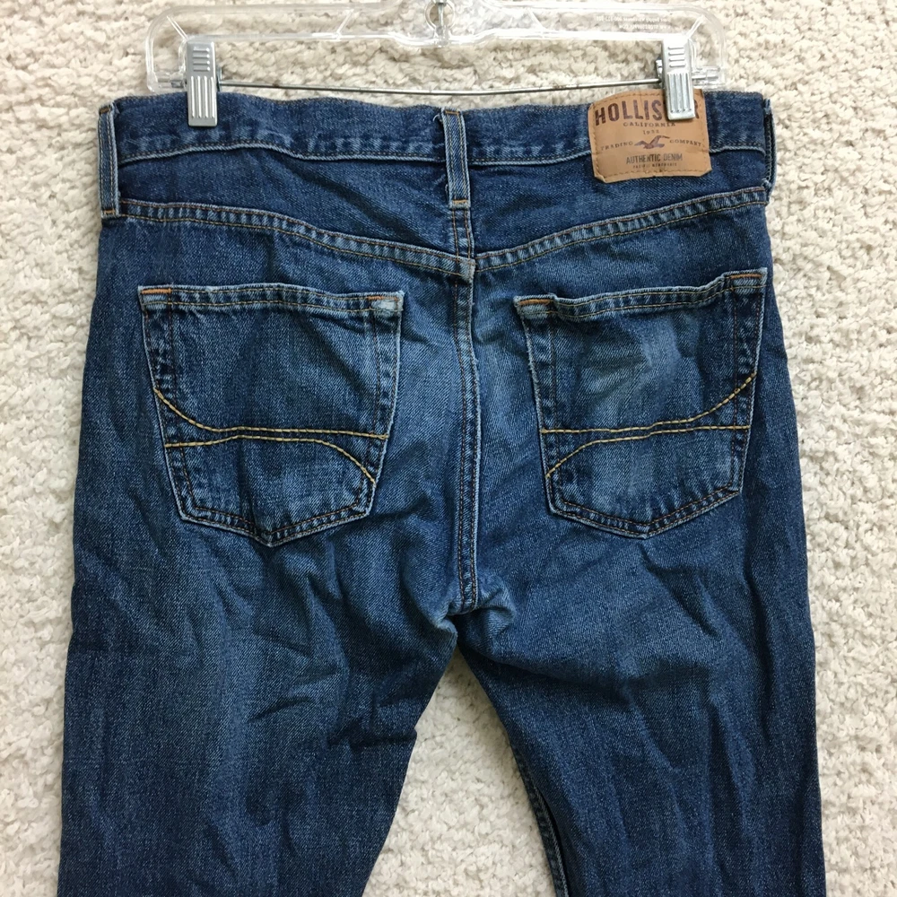 gtin13: Does Not Apply Closure: Button, Zip Accents: Button, Logo Theme: Preppy, USA Features: Comfort, Easy Care, Pockets Size: 31 UPC: Does Not Apply Fit: Regular Rise: Mid (10-12 in) Waist Size: 31 in Pattern: Solid Department: Men Garment Care: Machine Washable Fabric Type: Denim Type: Jeans Fabric Wash: Medium Style: Bootcut Country/Region of Manufacture: Mexico Color: Blue Inseam: 30 in Pocket Type: 5-Pocket Design Brand: Hollister Season: Fall, Spring, Summer, Winter Size Type: Regular Material: Cotton, Cotton Blend, Polyester