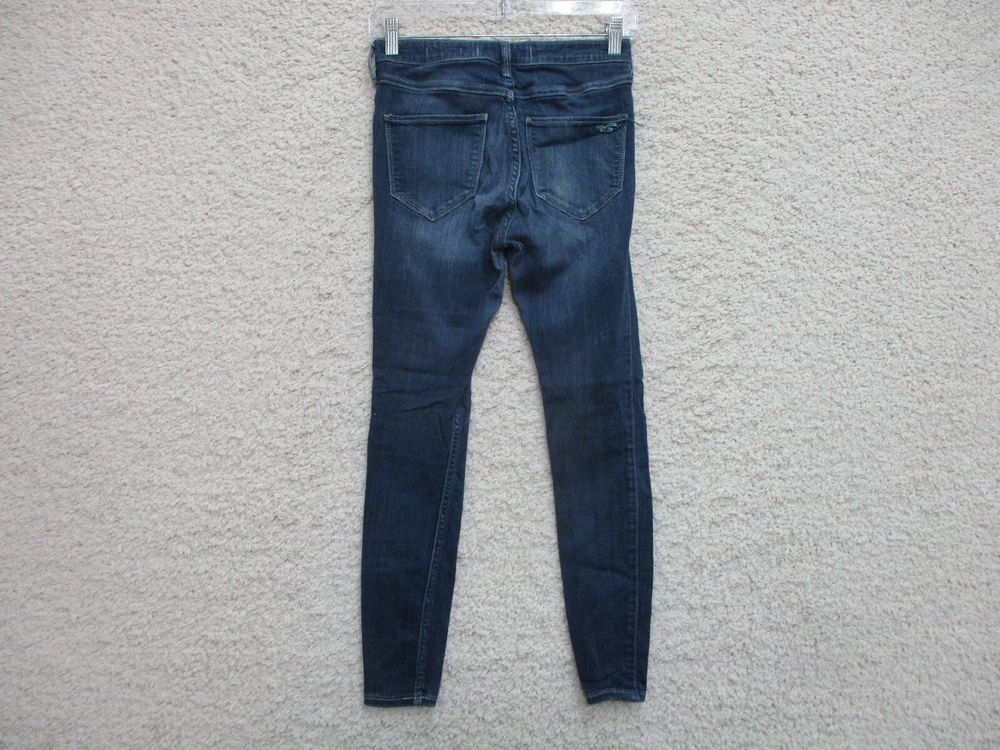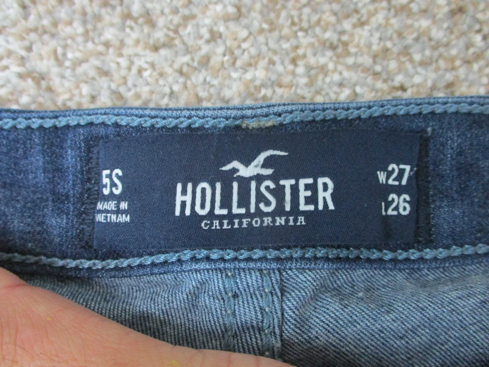 Style: Skinny Theme: American, Logo, Modern Pattern: Solid Fit: Regular Closure: Zip Features: Comfort, Easy Care, Pockets, Stretch Suspender Buttons/Belt Loops: Belt Loops Seller Notes: “Very Good Used Condition. Please, See Pictures for Full Condition and Measurements.” Type: Jeans Size Type: Juniors Brand: Hollister Material: Cotton, Spandex UPC: Does Not Apply Accents: Button, Logo Size: 5 Inseam: 26 in Pocket Type: 5-Pocket Design gtin13: Does Not Apply Fabric Wash: Dark Rise: Mid (8.5-10.5 in) Department: Women Waist Size: 27 in Garment Care: Machine Washable Season: Fall, Spring, Summer, Winter Color: Blue Country/Region of Manufacture: China Fabric Type: Denim