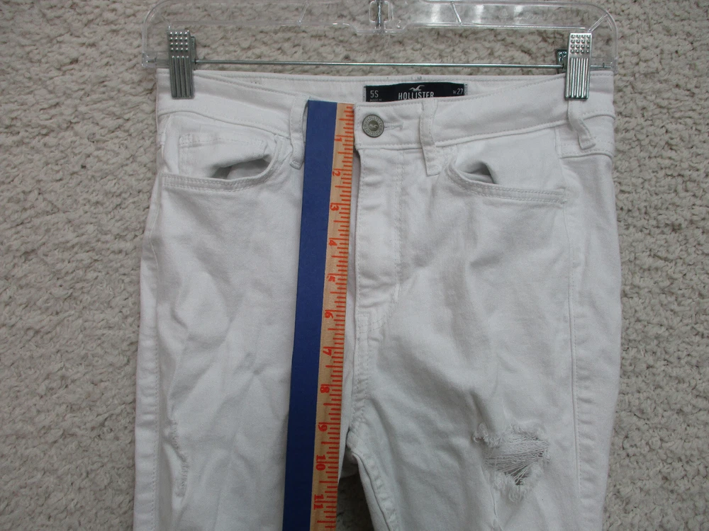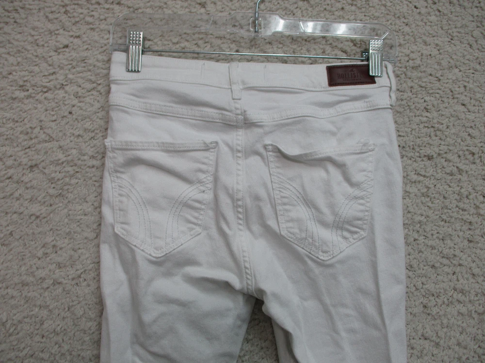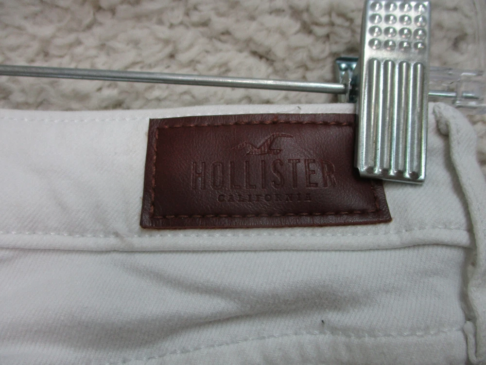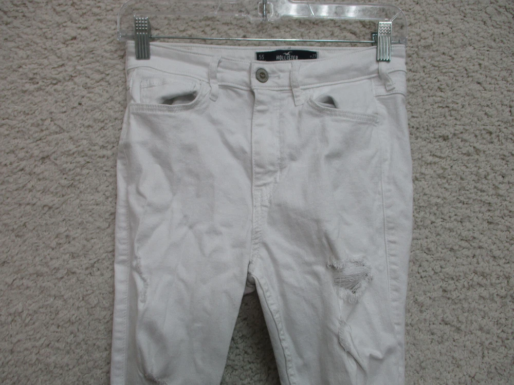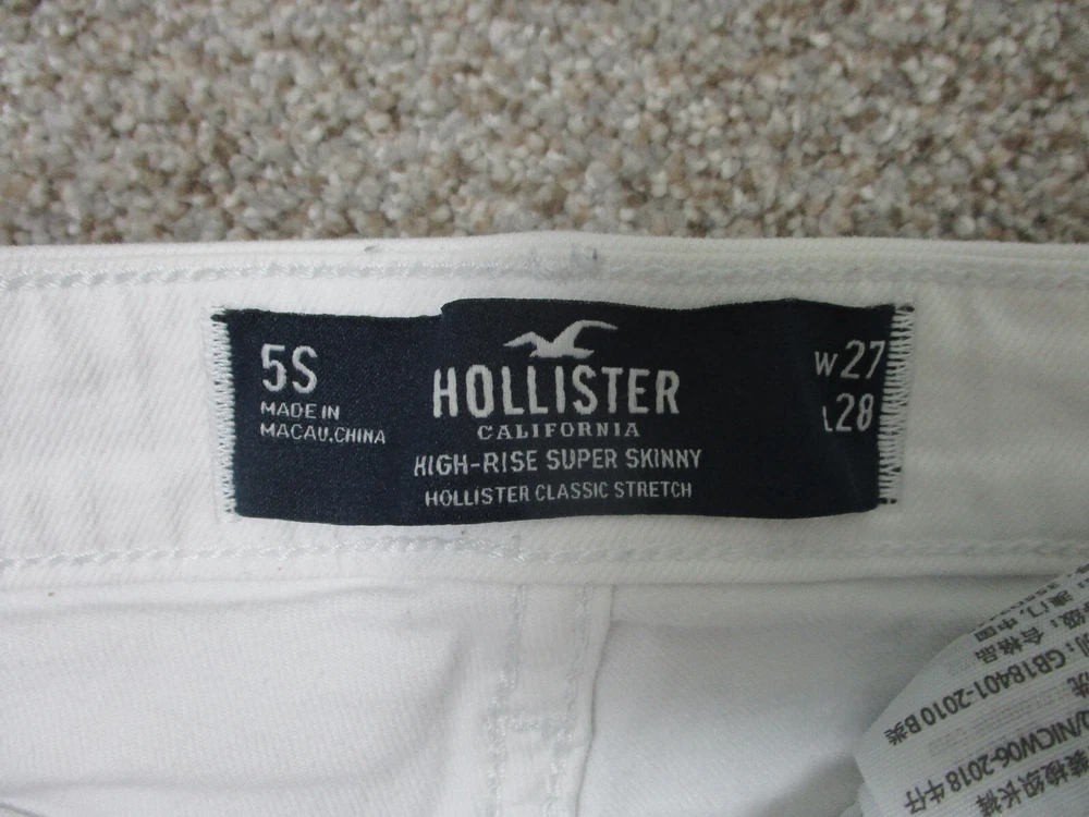 UPC: Does Not Apply Season: Fall, Spring, Summer, Winter Fabric Wash: Light Style: Skinny Suspender Buttons/Belt Loops: Belt Loops Fabric Type: Denim Theme: American, Logo, Modern Size: 5 Fit: Regular Inseam: 28 in Waist Size: 27 in Department: Women gtin13: Does Not Apply Closure: Zip Color: White Accents: Button, Logo Brand: Hollister Pattern: Solid Garment Care: Machine Washable Size Type: Juniors Rise: High (Greater than 10.5 in) Pocket Type: 5-Pocket Design Type: Jeans Material: Cotton, Cotton Blend Country/Region of Manufacture: China Features: Comfort, Easy Care, Pockets, Stretch