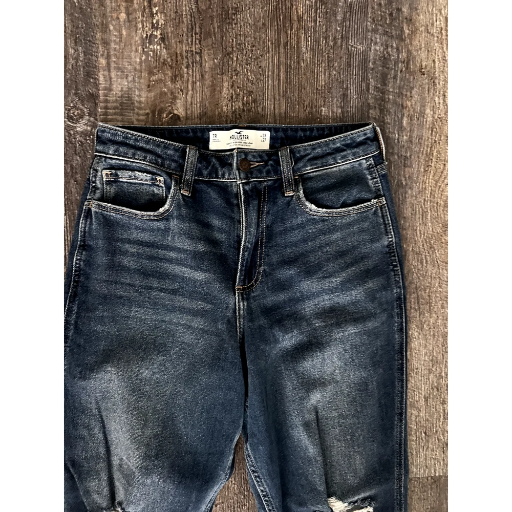 Hollister Jeans Womens Size 7R Blue Curvy High Rise Mom Jeans Denim Distressed