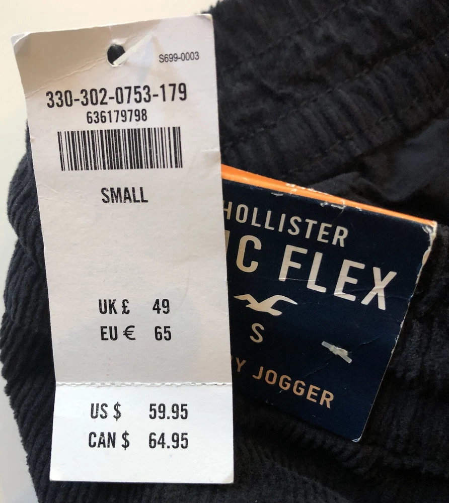 NWT Hollister Men’s S Epic Flex Corduroy Skinny Jogger Navy Draw String 97% Cotton, 3% Elastane Machine Wash