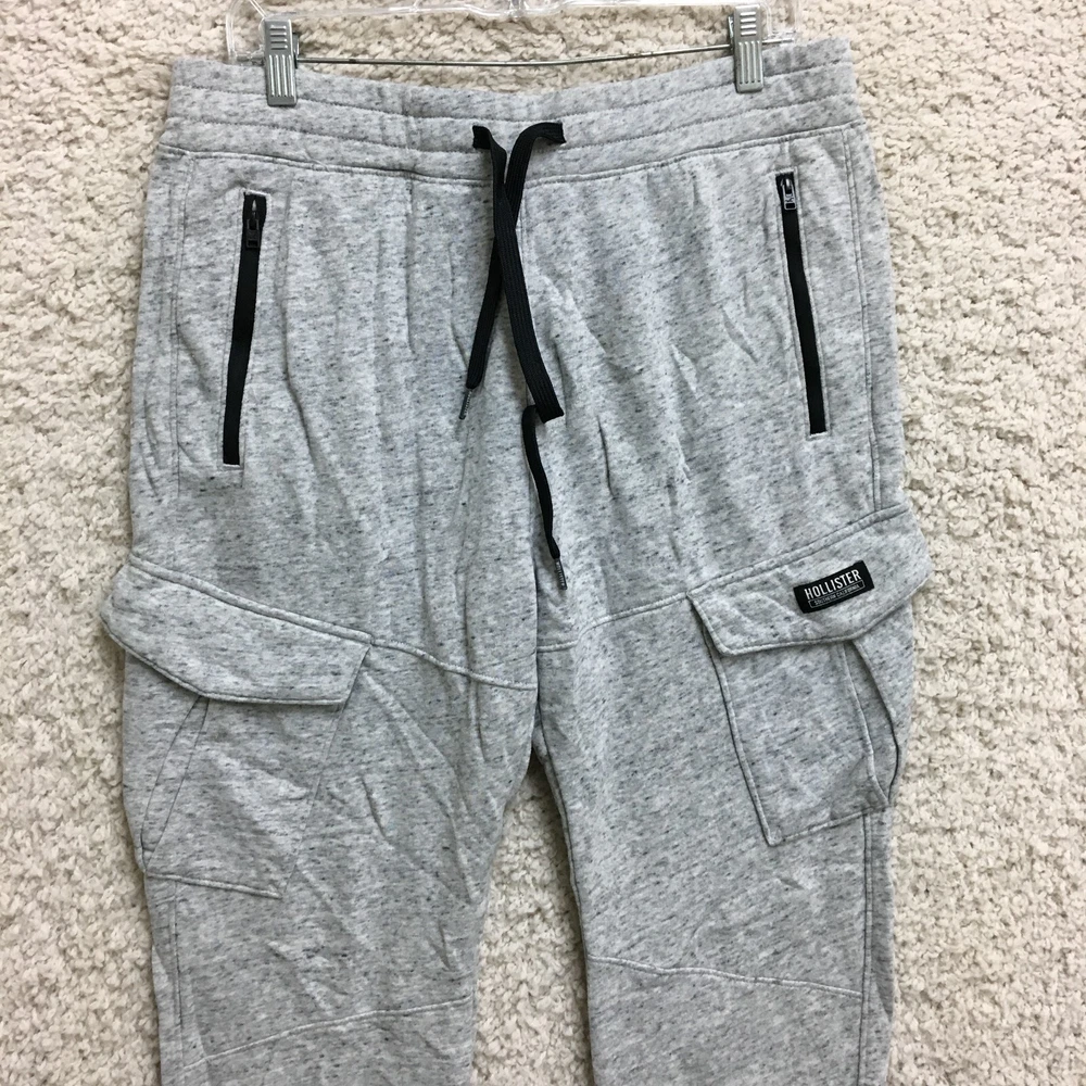 Hollister Pants Large Adult Gray Jogger Cargo Zip Pockets Tapered Casual Mens L