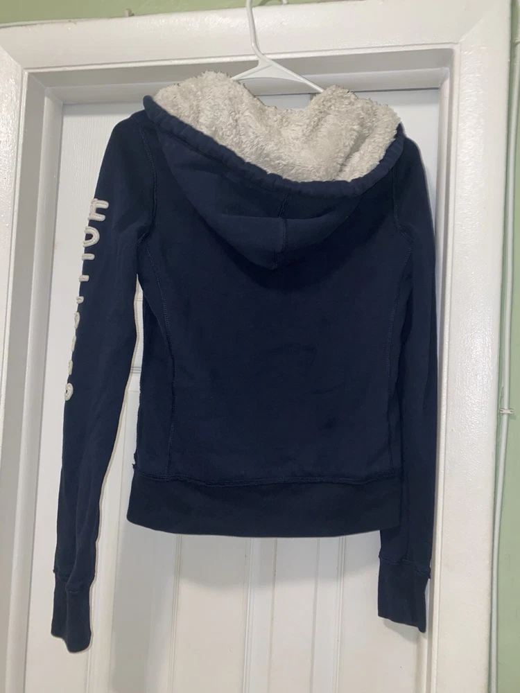 Hollister Sherpa Lined Hoodie Jacket, Navy Blue Button Down, Youth Teen XS