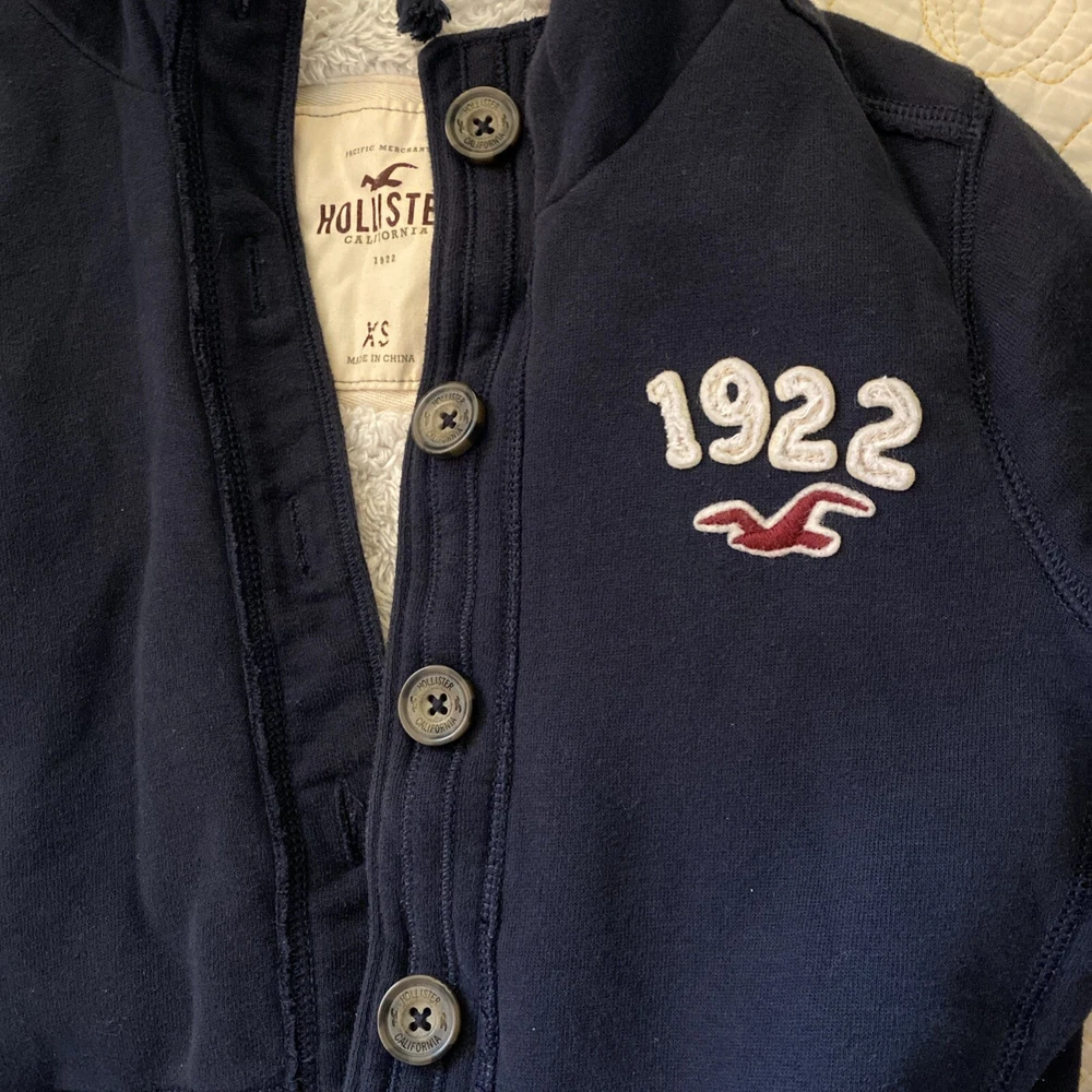 Color: Navy Blue Outer Shell Material: Cotton Blend Size: XS Model: 1922 Style: Basic Jacket UPC: does not apply Occasion: Casual, Activewear, Travel Features: Hooded, Insulated, Pockets gtin13: does not apply Vintage: Yes Accents: Logo, Fur Trim Fabric Type: Fleece Fit: Classic Insulation Material: Sherpa Department: Unisex Kids Pattern: Solid Lining Material: 100% Polyester Type: Jacket Closure: Button Theme: Outdoor Season: Fall, Spring, Winter Sleeve Length: Long Sleeve Brand: Hollister