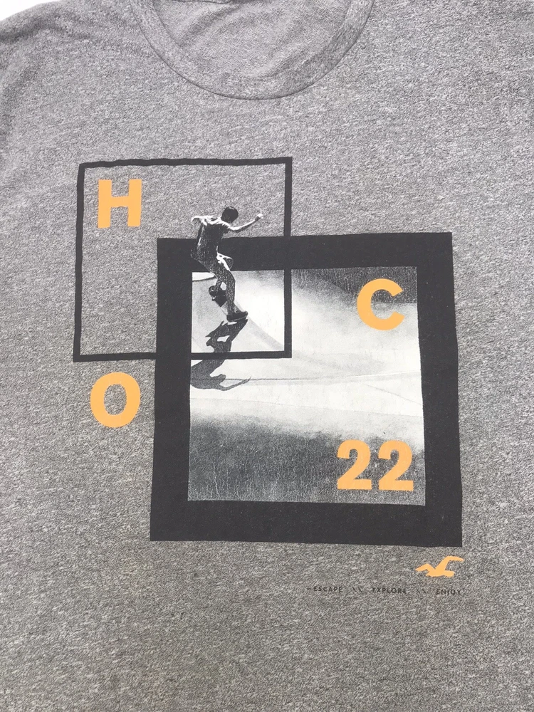 This Hollister T-Shirt in size XL is a must-have for any wardrobe. The classic crew neck and short sleeves make it perfect for everyday wear. The gray color adds a touch of versatility, allowing it to be easily paired with your favorite jeans or shorts. The T-Shirt is made from high-quality materials that ensure comfort and durability. It is perfect for casual outings, gym sessions or even as a cozy sleep shirt. Get your hands on this stylish and practical T-Shirt today!