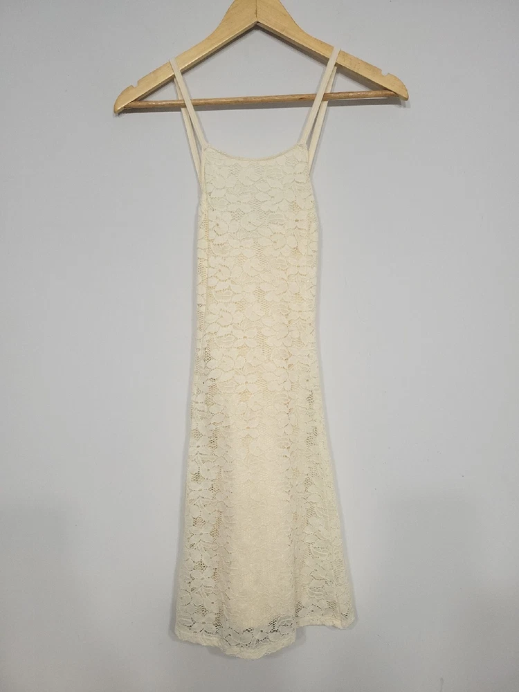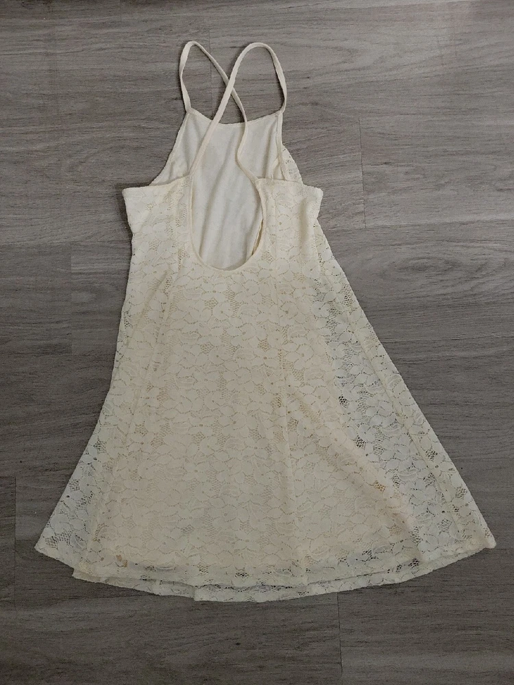 Hollister Women's Dress Size Small Cream Floral Lace Criss-cross. Pre-owned great condition Nylon cotton elastane Cream color 15 inches across 28 inches long G4F