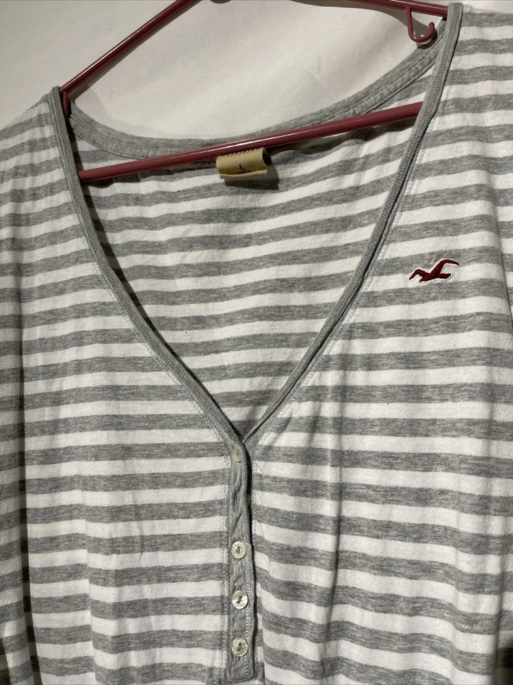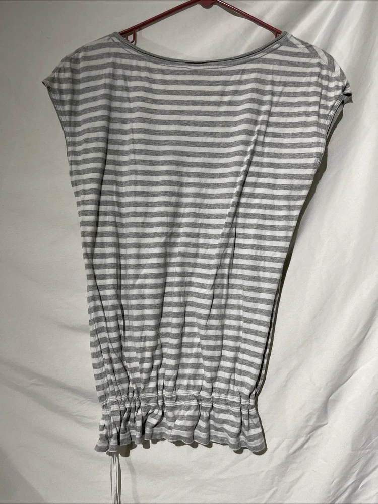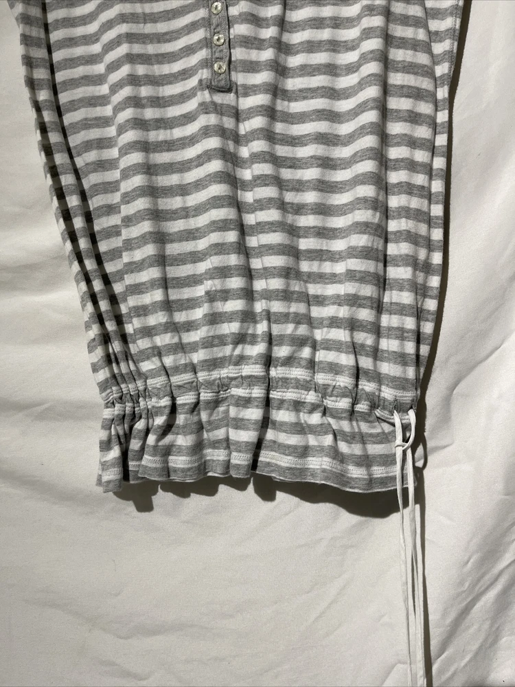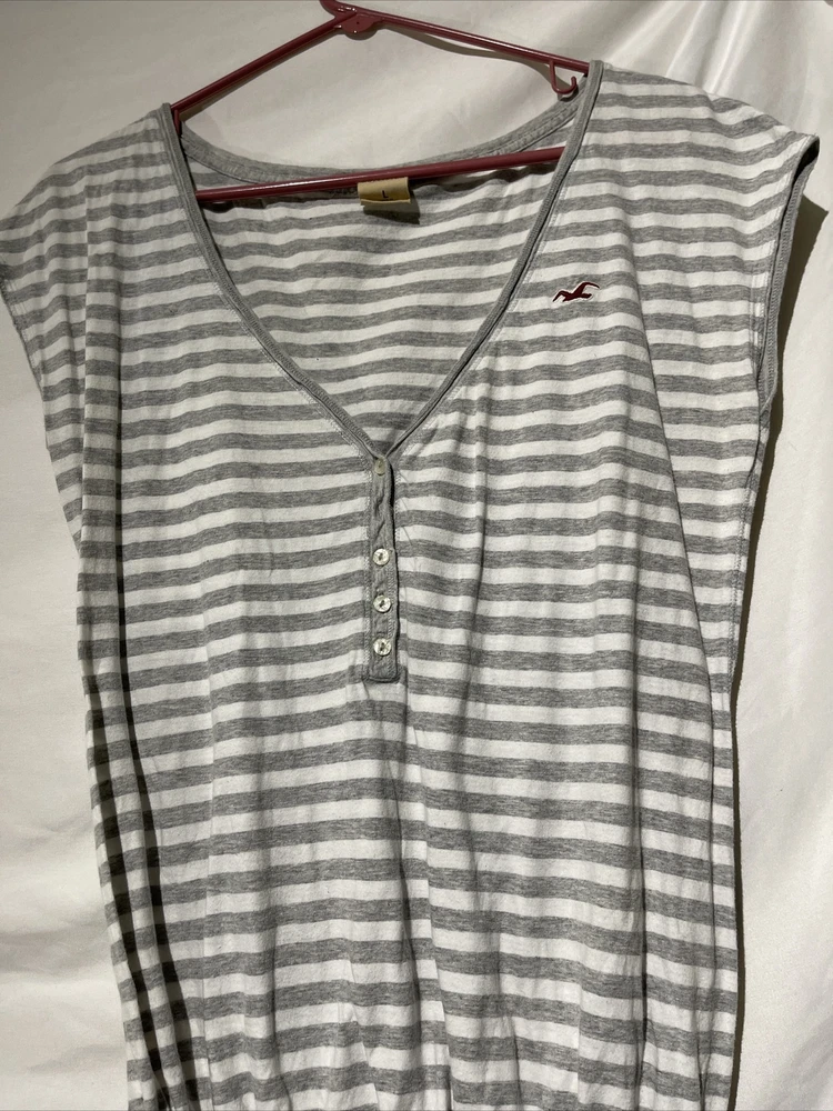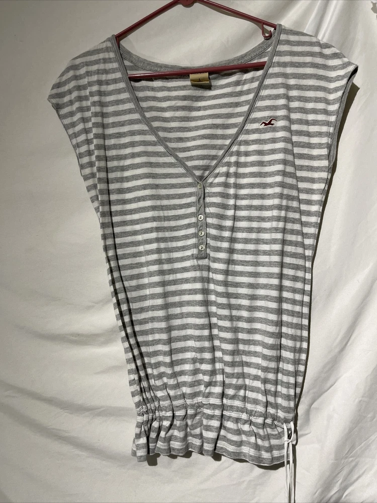 Hollister Womens Large Striped Button Sleeveless Stretchy Waistband Blouse Gray. Condition is Pre-owned. Shipped with USPS Ground Advantage.