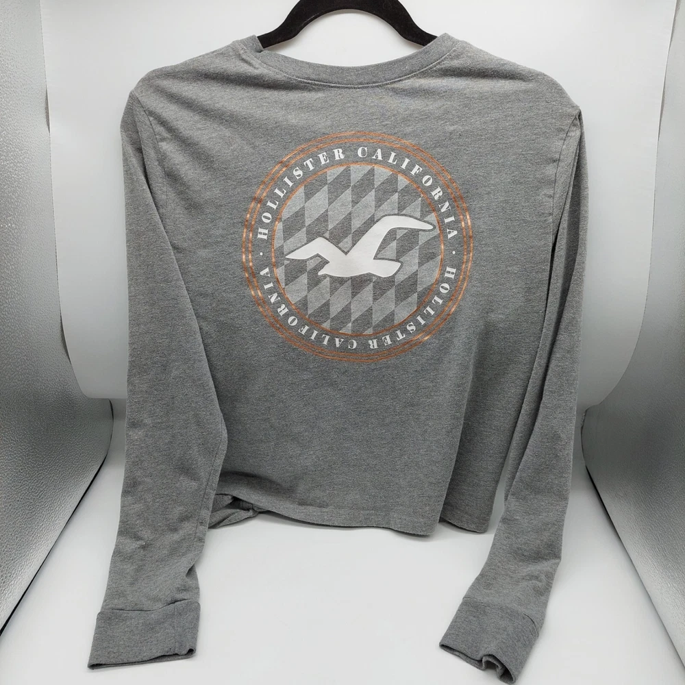 Hollister Women's Long Sleeve Gray Tee Tie In Front Pullover Size Small