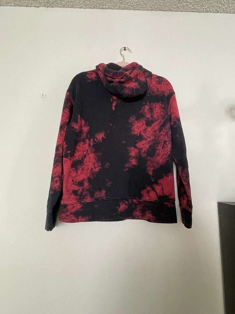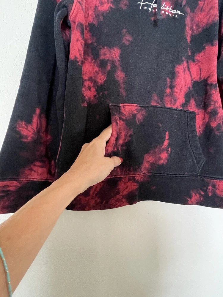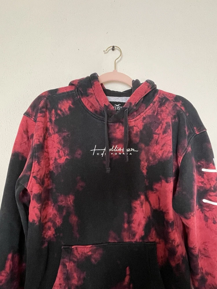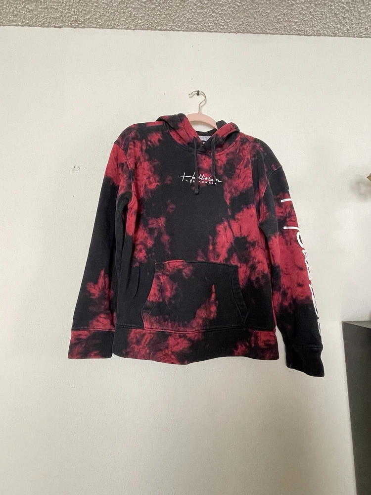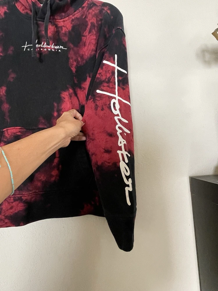 This Hollister Women’s sweatshirt is a pullover with a round neckline and long sleeves. It features a colorful embroidered logo on the front and comes in a size small. Spell out on sleeve. The sweatshirt is made of a polyester and cotton fleece material and is machine washable. It has a hood and pockets for added convenience and is perfect for walking in any season. The sweatshirt is part of the Must Have Collection product line. Add this California-themed sweatshirt to your wardrobe today! Excellent pre loved condition!