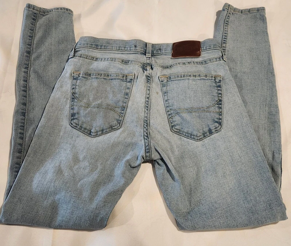 Pre-Owned, in good condition, see photos. Women's size 29x32 Hollister Super Skinny stretch jeans. Light wash, 5-pocket design, mid-rise. Size 29 is roughly size 8-10(M). There is one spot on the back by the right pocket, see photo. Measurements are approximate: Waist - 29" Rise - 9.5" Inseam - 30" Cuff - 5" Washed per label instructions, stored in a smoke-free and pet friendly environment. Thanks for looking! All orders ship within two business days, reasonable offers accepted.