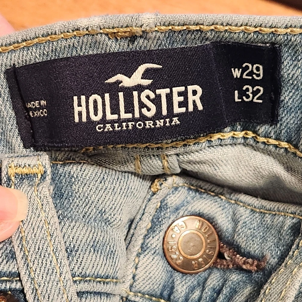 Brand: Hollister Style: Skinny Closure: Button, Zip Color: Blue Personalize: No Size: 29 Fabric Type: Denim Waist Size: 29 in Inseam: 30 in Garment Care: Machine Washable Theme: 90s, College Country/Region of Manufacture: Mexico Rise: Mid (8.5-10.5 in) Fabric Wash: Light Season: Fall, Spring, Summer, Winter Material: Cotton Blend Pattern: Solid Fit: Regular Seller Notes: “Pre-Owned, in good condition, see photos.” Type: Jeans Features: Stretch Size Type: Regular Department: Women Vintage: No Handmade: No