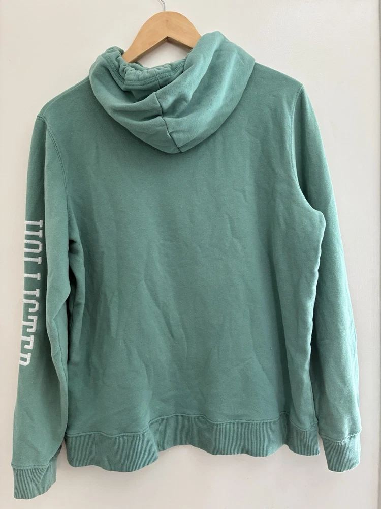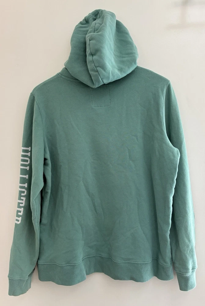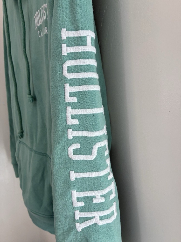 Hollister Women's Solid Green Embroidered Logo Cozy Pullover Long Sleeve Hoodie L. Condition is pre-owned. Smoke free, pet free home. Shipped via USPS Ground Advantage. In good condition. There is a spot of discoloration on the front of the hood by the drawstring. Free of rips or stains.