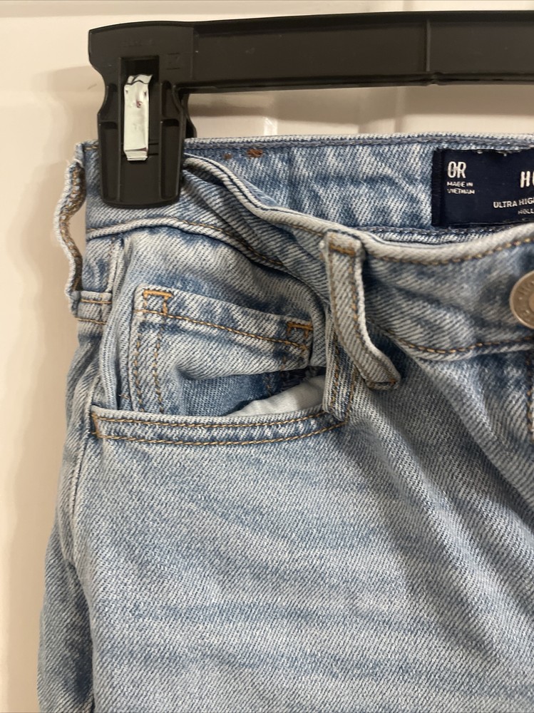 Hollister W24 L27 Ulta High Rise Distressed Stone Wash Blue Jean Women. Condition is Pre-owned. Shipped with USPS Ground Advantage.