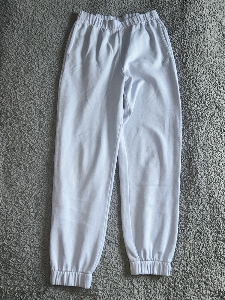 Hollister baby blue cuffed ankle joggers Size small Lovely joggers, selling due to a clear out. Fading on inside label due to washing. Small mark on them on back but very faint- photographed.