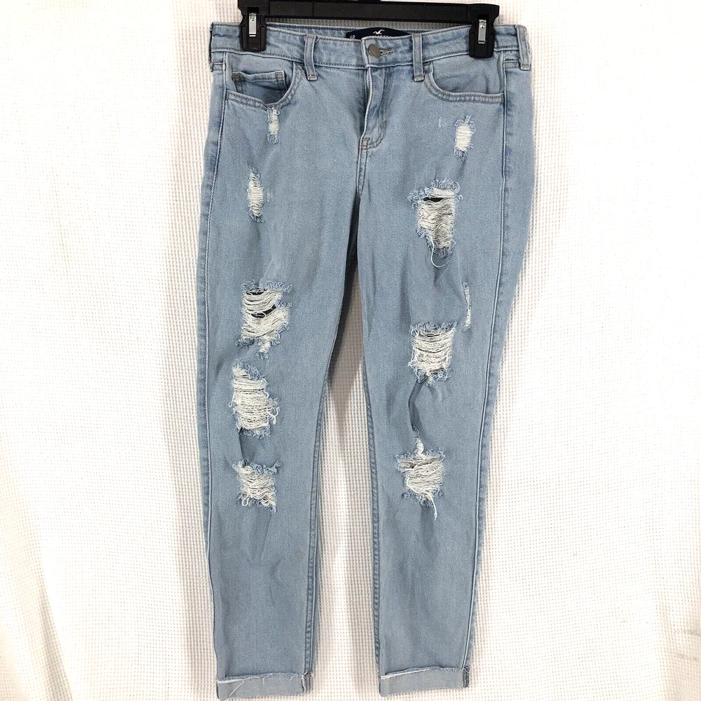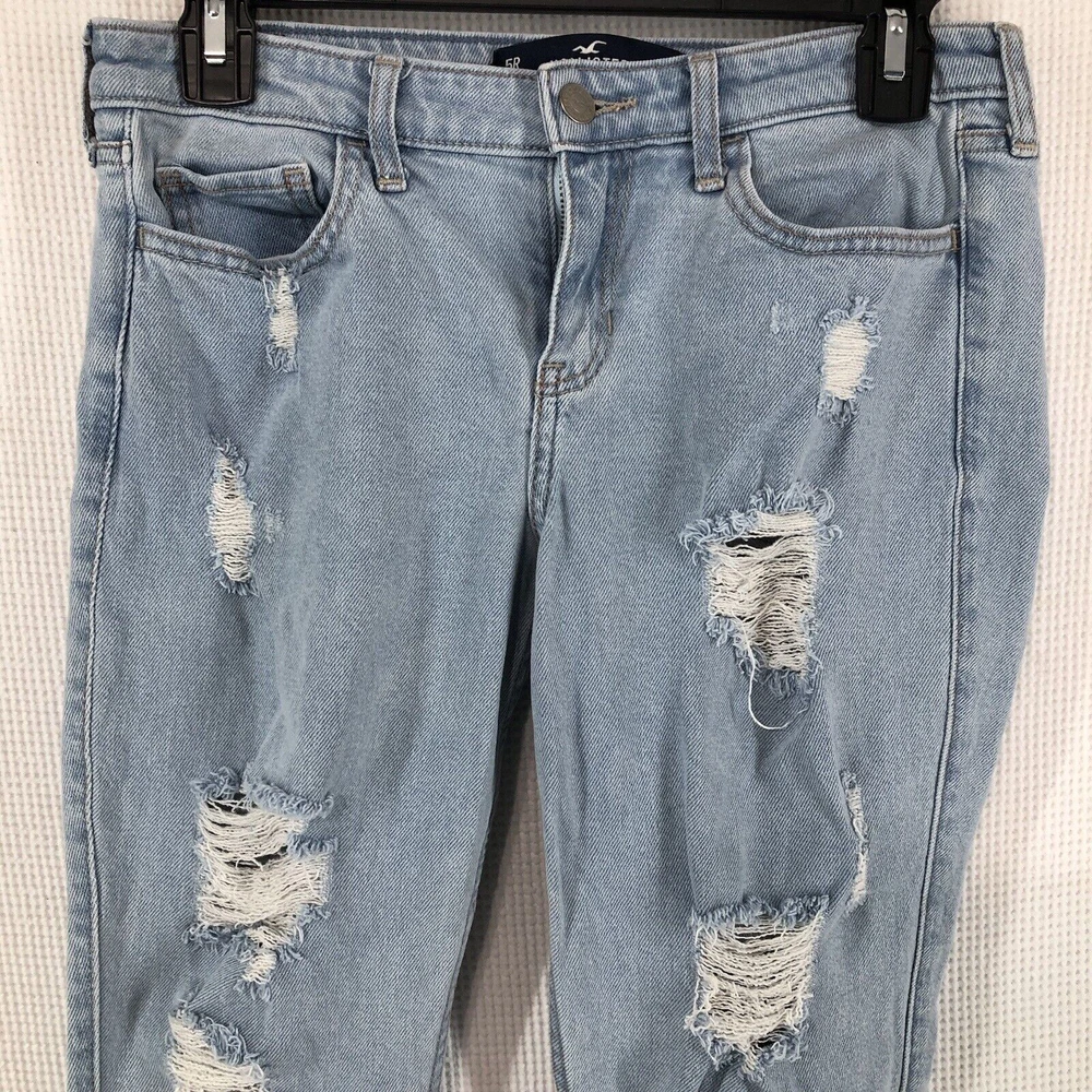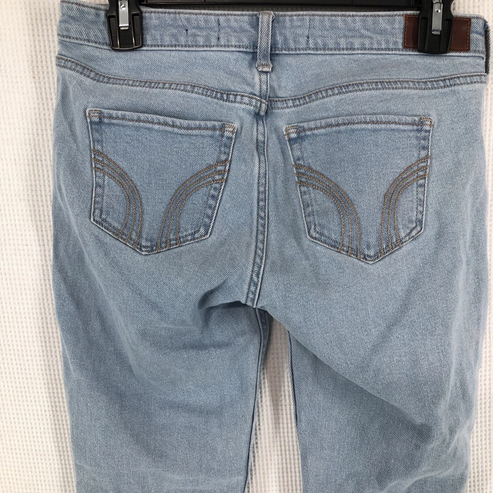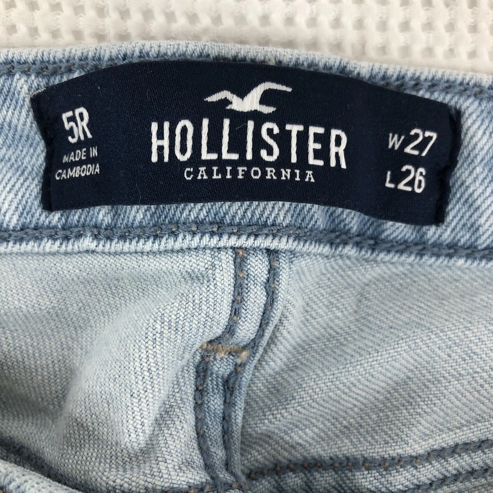 Elevate your denim game with these Hollister jeans for women. Crafted from light-washed blue denim, these slim-fit skinny jeans feature distressed accents, a button and zipper closure, and the iconic Hollister logo. The low-rise jeans are designed with a juniors’ size of 5 and a size type of juniors’ size 5. They are perfect for casual outings and can be paired with a variety of tops and shoes. Get ready to rock a stylish look with these Hollister jeans.