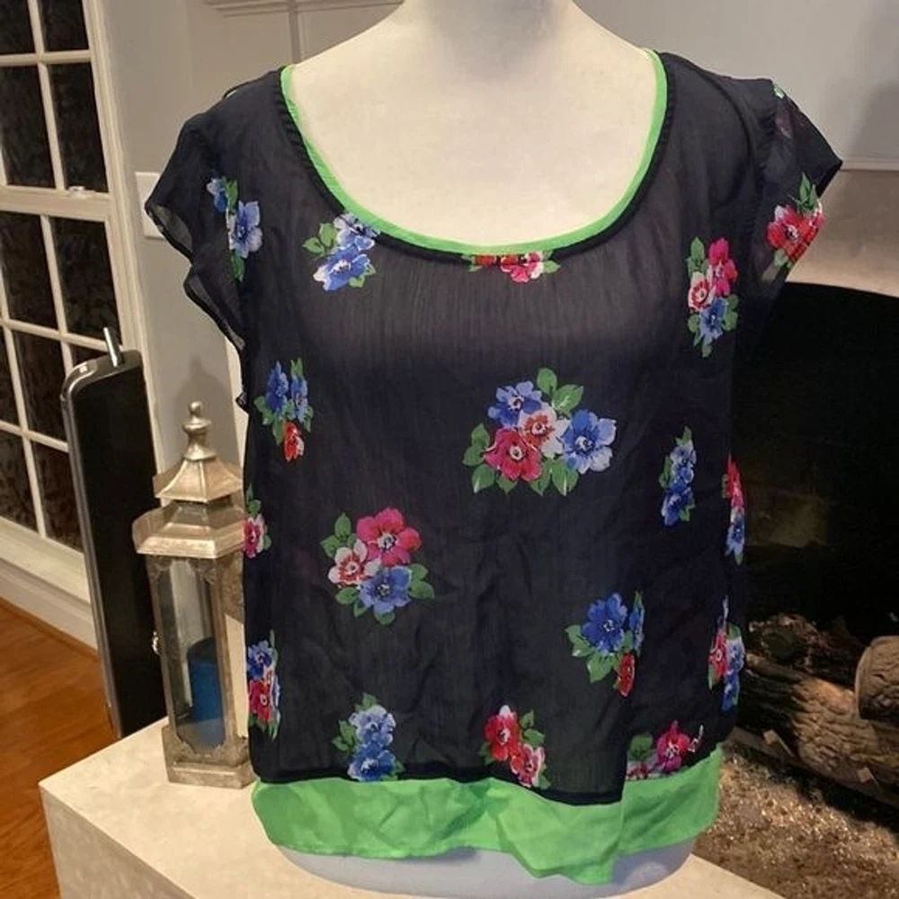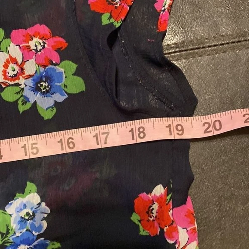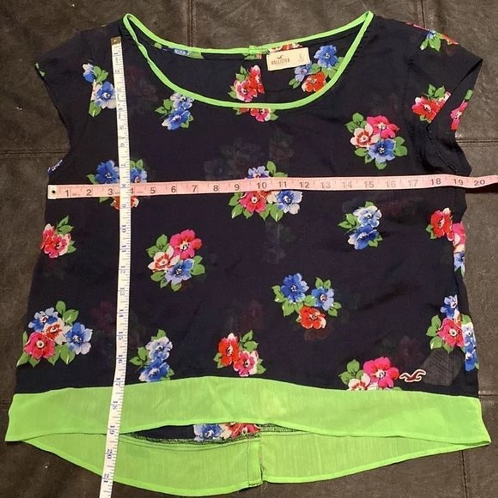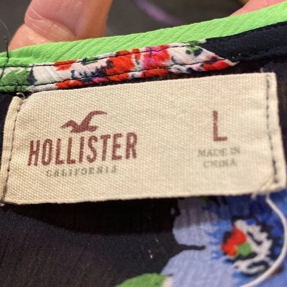 Hollister top size large This top is an excellent used condition. It buttons in the back. It has a beautiful floral pattern. And it is sheer and light. Measurements are shown in pictures. B65