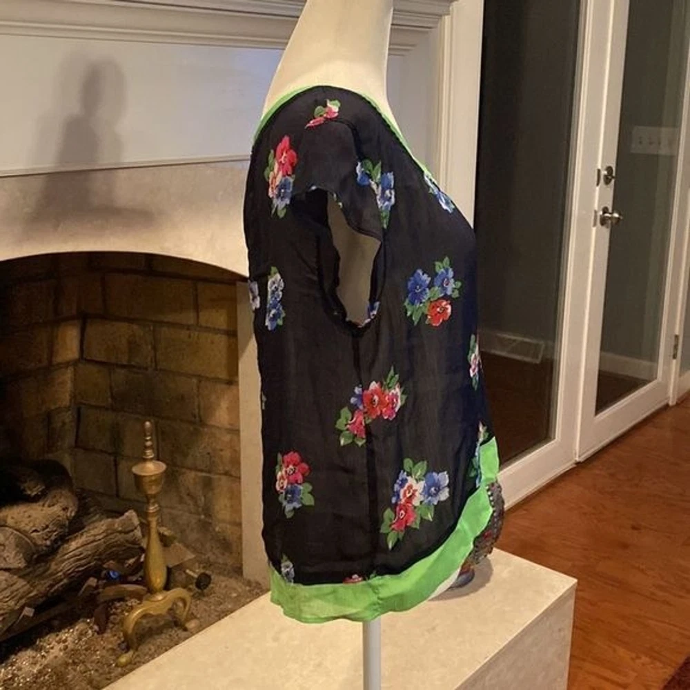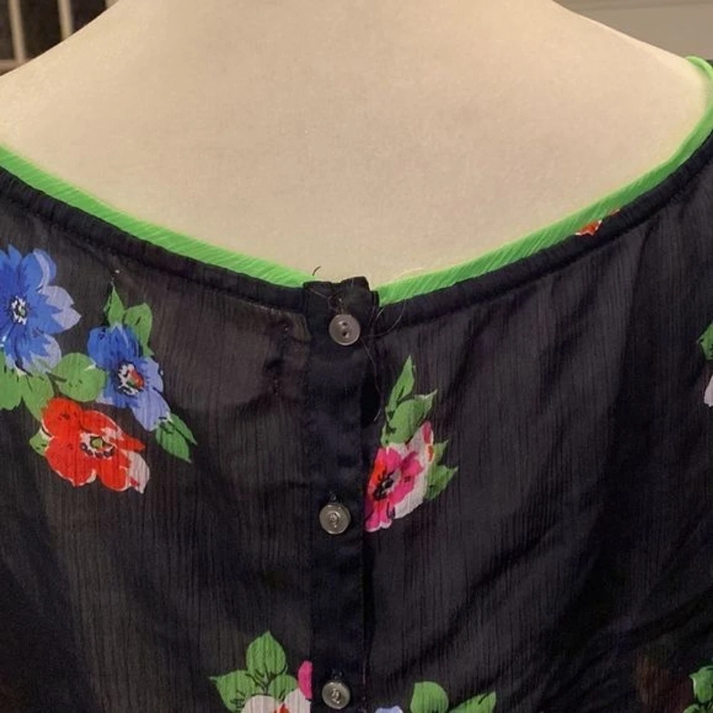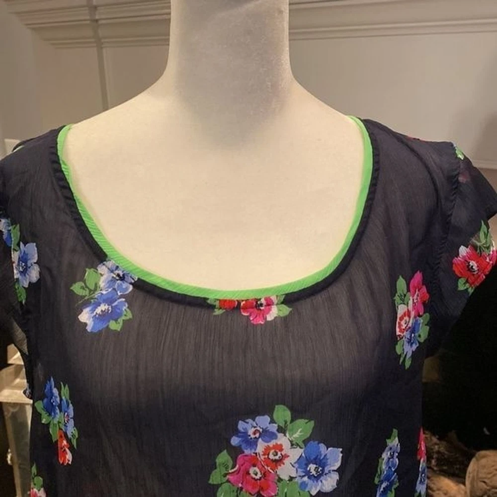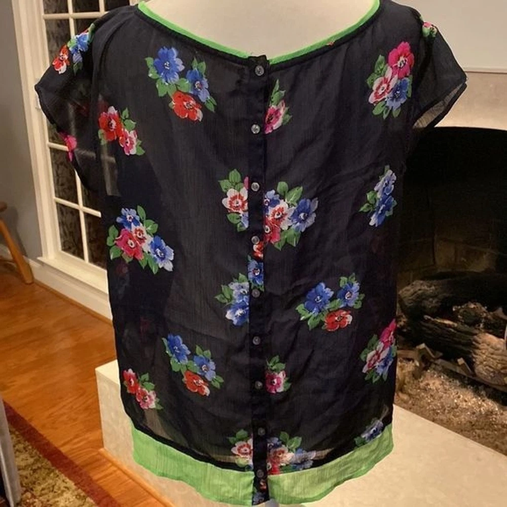 Hollister top size large This top is an excellent used condition. It buttons in the back. It has a beautiful floral pattern. And it is sheer and light. Measurements are shown in pictures. B65