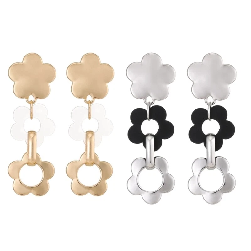 Features: The flower earrings have a simple and stylish designs to make you look more attractive. Universal size for most women and girls with pierced ears! Fashion dangle earrings are easy to wear, light and comfortable to wear. Can be matchs with a variety of clothes, suitable for of different occasions. A for women, girls, daughters, girlfriends, wives, friend! Specifications: Alloy Color: Gold/Silver Size: As Shown in the Picture Package Includes: 1 Pair Earrings note: Please allow 1-2cm errors due to manual measurement, make sure that you do not mind before you order. Due to the difference between different monitors, the picture may not reflect the actual color of the item.