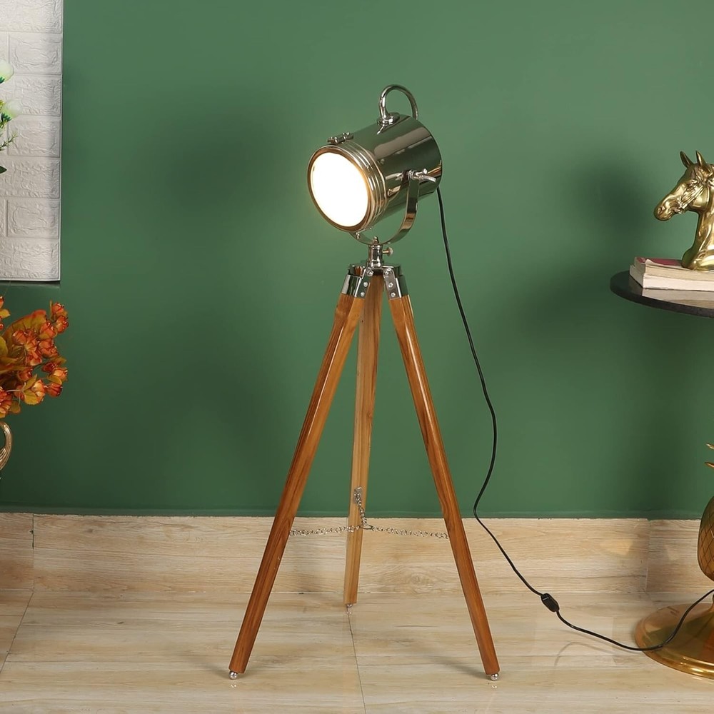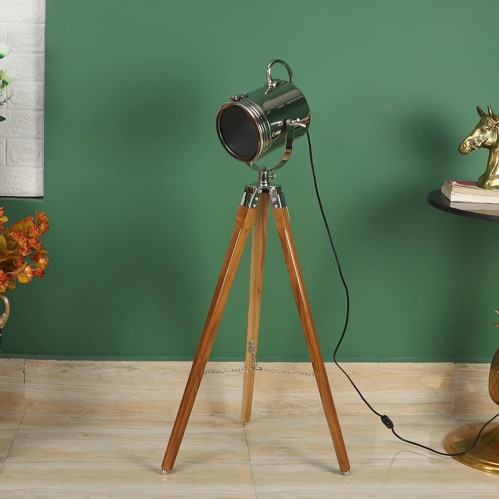 DESCRIPTION Material Used : Wood, Steel, Aluminum & Glass Color : Chrome & Brown Size : Head Size : 9 x 8 Inch Total Height :40" inches Weight : 4.8 kg Approx. Usage : Decoration, Floor Search Light, corner lamp, corner corner light Packing: Packed in a package, Corrugated Export Packaging Wiring : In accordance with national standards (AU, EU, UK, US) You can set it in any place you need, such as bedroom, living room, reading corner, apartment, music room, media room, painting room, office and so on. SOLD BY MEDIEVAL REPLICAS