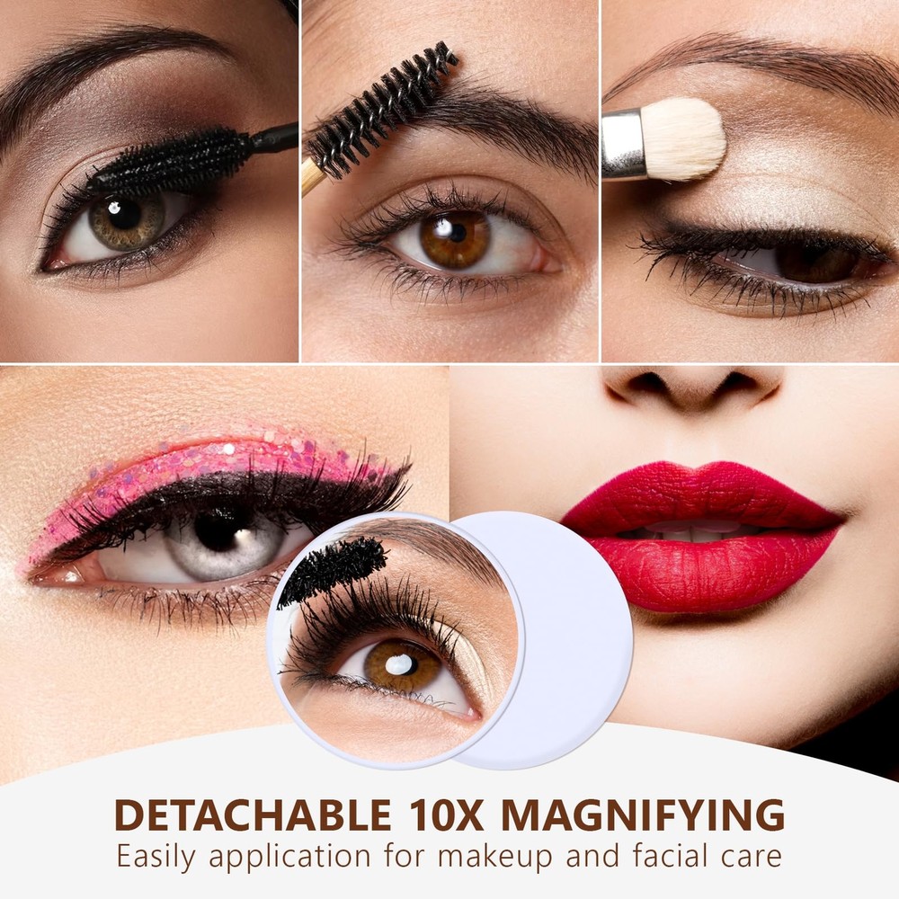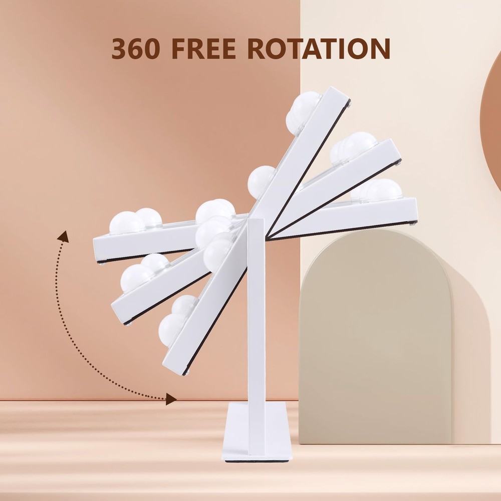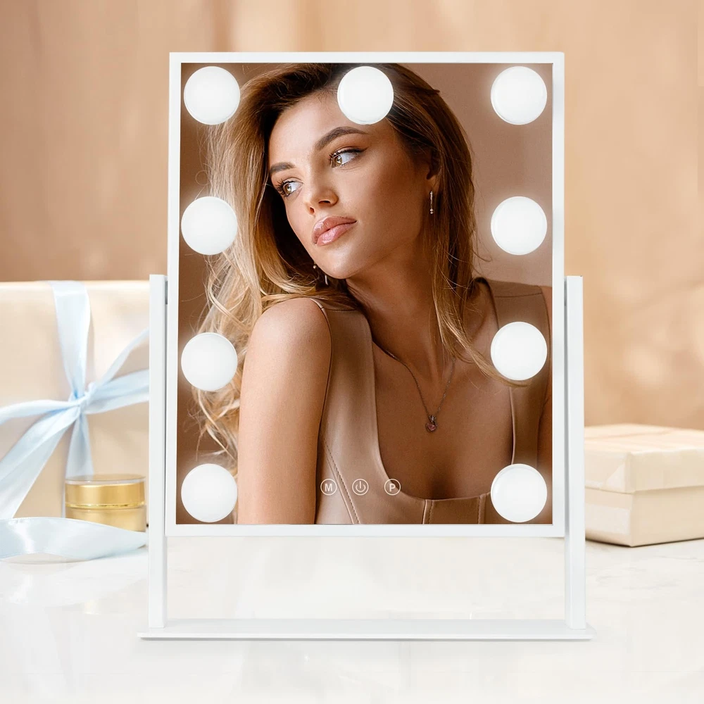 Suitable Size: The makeup mirror (11.8" L x 10" H) allow you to get your entire face in view at once. Large tabletop mirror is large enough to be used for makeup, grooming and even dressing. 360 degree rotation can be fixed in any position, providing you with a prime perspective Excellent Lighting: Featuring 9 dimmable LED bulbs and 3 color modes(daylight, cold light, and warm light), our makeup mirror with lights ensures you have just the right illumination for flawless makeup application Smart Touch Control: Make mirror with light has intelligent control and memory function. With the touch control feature, adjusting the brightness and color temperature is a breeze. The Memory function makes this lighted vanity makeup mirror with lights return to the same brightness it was on before being switched off Aluminum Frame & Prime Quality LED Bulbs: The Tabletop make up mirror with light Made of top materials, sturdy and durable. The pre-installed LED bulb has a life span of up to 50,000 hours, soft light protect your eyes Best Friendship Choice: Whether it's for family, friends, or loved ones, our mirrors are a great choice. Additionally, mirrors come in different colors for you to choose from, and you can purchase your favorite color according to your preferences