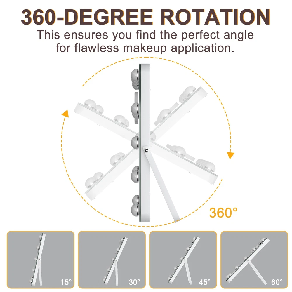 ๐๐ใ๐๐จ๐ฎ๐ง๐ ๐๐จ๐ซ๐ง๐๐ซ ๐๐๐๐ญ๐๐ง๐ ๐ฅ๐ ๐๐๐ฌ๐ข๐ ๐งใThe Hollywood Vanity Mirror with Lights is designed with round corner rectangle white frame, it provides a sophisticated look & the modern feeling. The soft edges add visual beauty and ensure safety. The matte metal frame enhances the mirror's sturdiness and longevity. Lighted make up mirror is a fantastic addition to our vanity. ๐กใ๐๐๐ฃ๐ฎ๐ฌ๐ญ๐๐๐ฅ๐ ๐๐ข๐ ๐ก๐ญ๐ข๐ง๐ ๐๐ง๐ ๐๐ญ๐๐ฉ๐ฅ๐๐ฌ๐ฌ ๐๐ข๐ฆ๐ฆ๐ข๐ง๐ ใ led mirror features 3 lighting modes: cold light, warm light, and natural light. Lighted makeup mirror with 50,000 hours life Max 6000 Lumens high brightness light bulbs, and the brightness can be adjusted 10%-100%. The dimmable brightness and the three lighting modes, which let you adjust the light to your needs. ๐บใ๐๐ฆ๐๐ซ๐ญ ๐๐จ๐ฎ๐๐ก ๐๐จ๐ง๐ญ๐ซ๐จ๐ฅใThis desk mirror with lights has a smart touch button, turn on/off the light by touching the sensor switch, Short press button to change the color modes, long press button to adjust the brightness. Comes with a detachable 3.15" round magnifying mirror, the magnification is great for detailed makeup. ๐ใ๐๐๐ยฐ๐๐จ๐ญ๐๐ญ๐ข๐จ๐งใThe mirror allows for 360-degree rotation, making it easy to swivel to any side and find the perfect angle or position for detailed makeup application. It stays fixed in any position, providing you with the perfect perspective. ๐ใ๐๐๐ซ๐๐๐๐ญ ๐๐ข๐๐ญ ใThis tabletop makeup mirror with lights is very suitable as a gift for girls who love beauty, perfect for birthdays, Valentine's Day, Mother's Day, Christmas, and more. We offer a 12-MONTH Exchange or 30-DAY Money Back Warranty Unconditionally. Please feel free to contact us via Amazon if you have any product problems:)