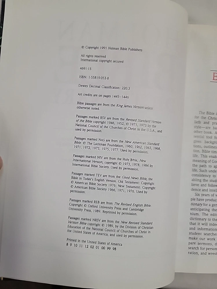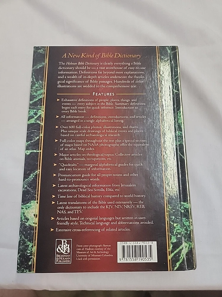 This comprehensive Holman Bible Dictionary is a must-have for anyone interested in religious studies. It contains 1444 pages of useful information on a variety of topics related to the Bible. The book covers all aspects of the Bible, from the Old Testament to the New Testament, and provides insightful explanations of biblical terms and concepts. The hardcover format of this book makes it durable and ideal for long-term use. The book is also illustrated by Jody Waldrup, making it visually appealing and easy to navigate. Whether you're a student of religious studies or a casual reader, the Holman Bible Dictionary is an essential resource. The book is clean with no marking or writing. The pages are all intact with none torn or ripped. The spine is tight and the hinges are good.
