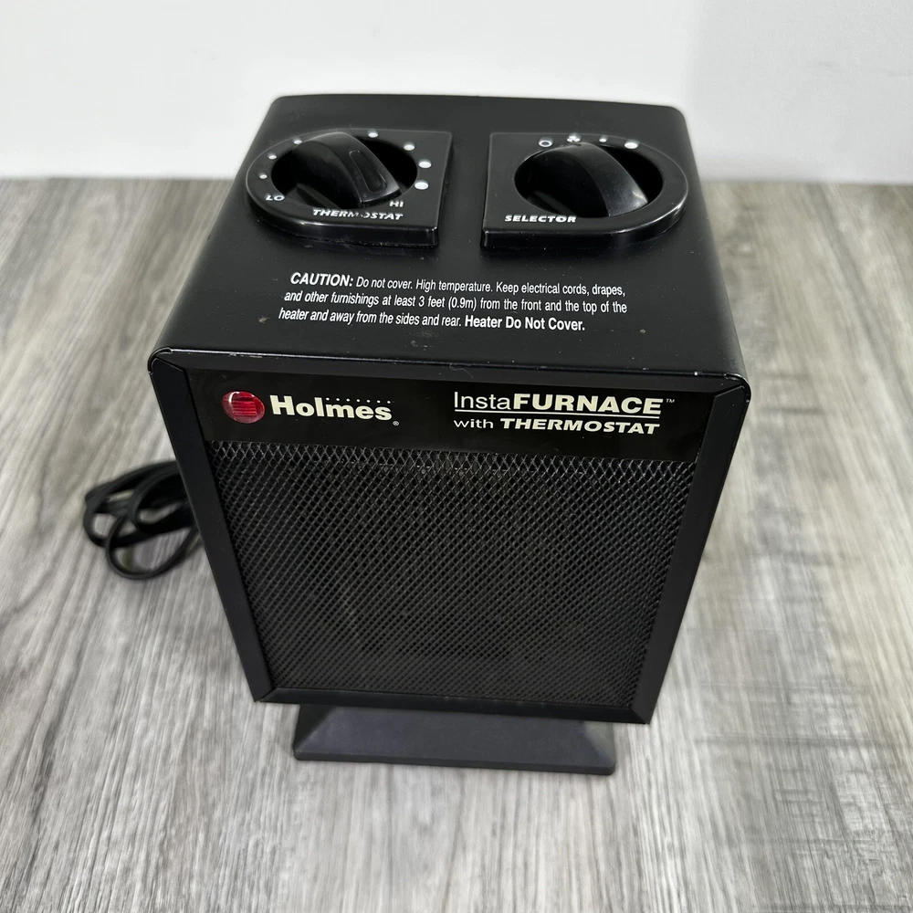 Holmes HPH-3085 Insta Furnace Thermostat Ceramic Space Heater Swivel Base Tested. In used condition please see pictures for details. Tested and works. Gives heat out very fast. Please note I did not take it apart to clean the fan blade, so there is still dust on that.