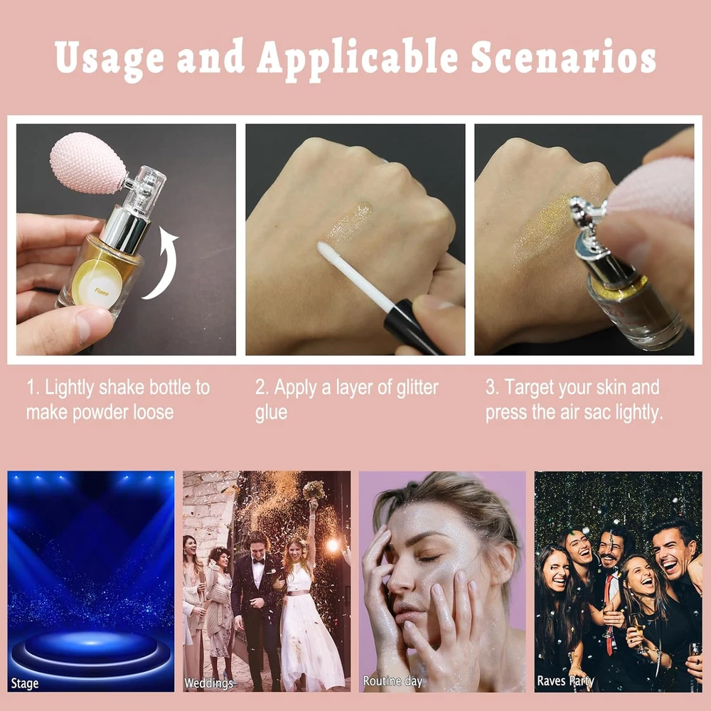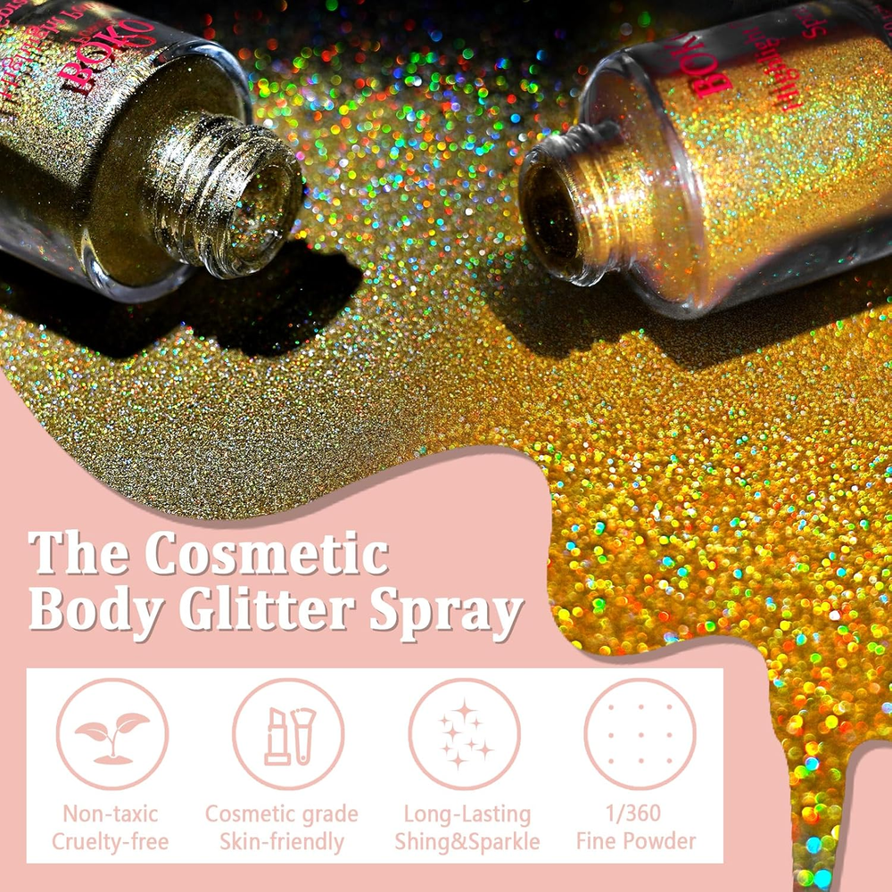 Body Glitter Spray, 2Pcs Holographic Glitter Hair Spray Long-Lasting Body Shimmer Powder Sparkle Highlighter Makeup Christmas Rave Accessories for Women Clothes Face Hair Nails- Sunshine Marigold Safe and Cruelty-Free: The highlight-glossing glitter spray is made of high-quality material, which is friendly to all types of skin, lightweight, and sparkling.Non-irritating to skin.The body glitter makes you shining likes star under any lights in a crowd. Using Tips: For a longer and better sparkle powder effect, you can prep body lotion or glitter glue gel beforehand so the spray body glitter can attach skin in place well. Unique Customized Colors: Boko glitter spray for face is rich in outstanding color options! Our glitter body spray has innovated 7 sets trendy colors for all the makeup amateur and professional makeup artists. Dreamy colors such as Rye Rose, Colorful Bubbles, Rainbow and more will highlight your daily face makeup. The spray glitter for body can help you create unique bride makeup, mermaid makeup, fairy makeup, rave makeup, face painting, or professional dancer stage makeup. Multi-purpose Body Glitter Spray: Add some glamour and radiance to your makeup with this cosmetic glitter spray. Cosmetic glitter effectively enhances facial contours, giving your face a radiant and seductive three-dimensional look. BOKO spray glitter dust is not only a highlighter makeup for the face, also a glitter spray for hair and body to sparkle hair, collarbones, back, shoulders, lip, eyeshadow, etc. And it is a pretty fabric glitter spray for clothing, hat, and more accessories. Easy And Elegant To Use: Our glitter hairspray comes in a vintage perfume bottle with a pink airsac, gently squeeze the airsac and the glitter powder sprays out evenly. This sparkle hair spray is compact and lightweight, making it easy to carry around. Removing the glitter powder is simply a matter of rinsing with water. Tips Please shake well before using the face glitter and keep it in a cool place after use to prevent moisture caking. Sparkle on All Occasions: The hair glitter spray will make you stand out under the lights at any rave. Such as singer concerts, red white blue patriotic flag theme parties, 4 of july Independence Day, Christmas, festivals, themed events and more. Our festival glitter can be used with face painting, mermaid hair accessories, unicorn glitter, and costume makeup, This hair glitter will create a glamorous makeup for you. Also, our hair spray glitter is one of the great gifts for girls. Product Description Easily enhance your makeup with our versatile body spray glitter Effortlessly add a touch of glamour to your skin or hair with our exquisite body glitter powder. Unleash your creativity and express your individuality with our rainbow glitter. Apply the gel to your skin and lightly mist our glitter makeup spray for a glamorous look. The video showcases the product in use. The video guides you through product setup. The video compares multiple products. The video shows the product being unpacked. 1. Indulge in the epitome of luxury with our facial glitter, providing a flawlessly effortless application that enhances your skin with a stunning, long-lasting sparkle. 2. Discover our spray body glitter in 7 captivating sets, each offering a unique combination to meet all your sparkling desires. Loose glitter leaves colorful sparkles on the skin for an eye-catching look! Our hair and body glitter spray will give you an unparalleled radiance. It's accessory for beach getaways, exhilarating concerts, vibrant stages, red white blue patriotic flag theme parties, 4 of july Independence Day, paris olympic, and unforgettable themed events. About Boko Body Glitter Spray 1. Not only is our spray glitter for adding sparkle to makeup looks, but it also acts as a blank canvas for your imagination. Our glitter spray for flowers, resin crafts, scented candles, tasseled hemp, and even anything else to need glitter everywhere. With our versatile gold glitter spray, the possibilities are truly endless! This spray body glitter allows you to customize your desired sparkle look on various surfaces, making it great for any occasion or event. So whether you're aiming for a subtle touch of sparkle or a bold statement piece, our hair and body glitter spray is a tool to help you achieve your desired look. 2. Elevate your beauty game with our versatile glitter for body. Whether you're looking to enhance your face makeup, create captivating eye looks, embrace body art, or add a touch of sparkle to your hair accessories, our sparkle spray is great choice. With its high-quality formula, it effortlessly glides on, giving you a stunning, long-lasting sparkle that will make heads turn. What sets our iridescent glitter spray apart from the rest is its easy removal process. Simply wash off with water, and voila! No more hassle or frustration. You can experiment with different looks and styles without worrying about the aftermath. 3. Our glitter spray for hair and body is designed to add a touch of magic to any occasion, making you shine brighter than ever. From intimate gatherings to exciting events, our glitter setting spray effortlessly elevates your everyday routine, turning ordinary days into extraordinary moments. 4. Suitable for any situation, our versatile face and body glitter effortlessly transforms your look, enhancing your style and making a statement. Whether it's a romantic date, a costume party, a holiday celebration, or a captivating performance, our iridescent tulip glitter spray paint adds a radiant glow that captures everyone's attention. 5. The glitter spray set include 2pcs glitter spray total 20ml /0.68 fl Oz, and also include 2 glue. 6. Tips: Keep away from fire and out of reach of children in a dry, cool place. This glitter spray must be avoided on the sensitive areas and on broken, inflamed or itchy skin. 7. How to Use: Our body glitter spray is easy to use. Begin remove the cover, then gently squeeze the ai