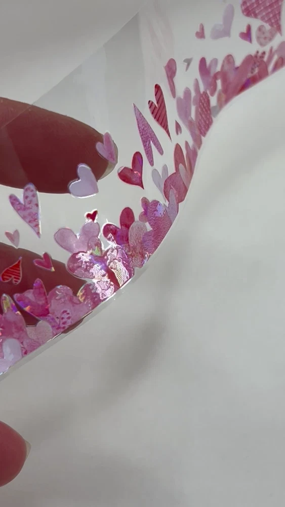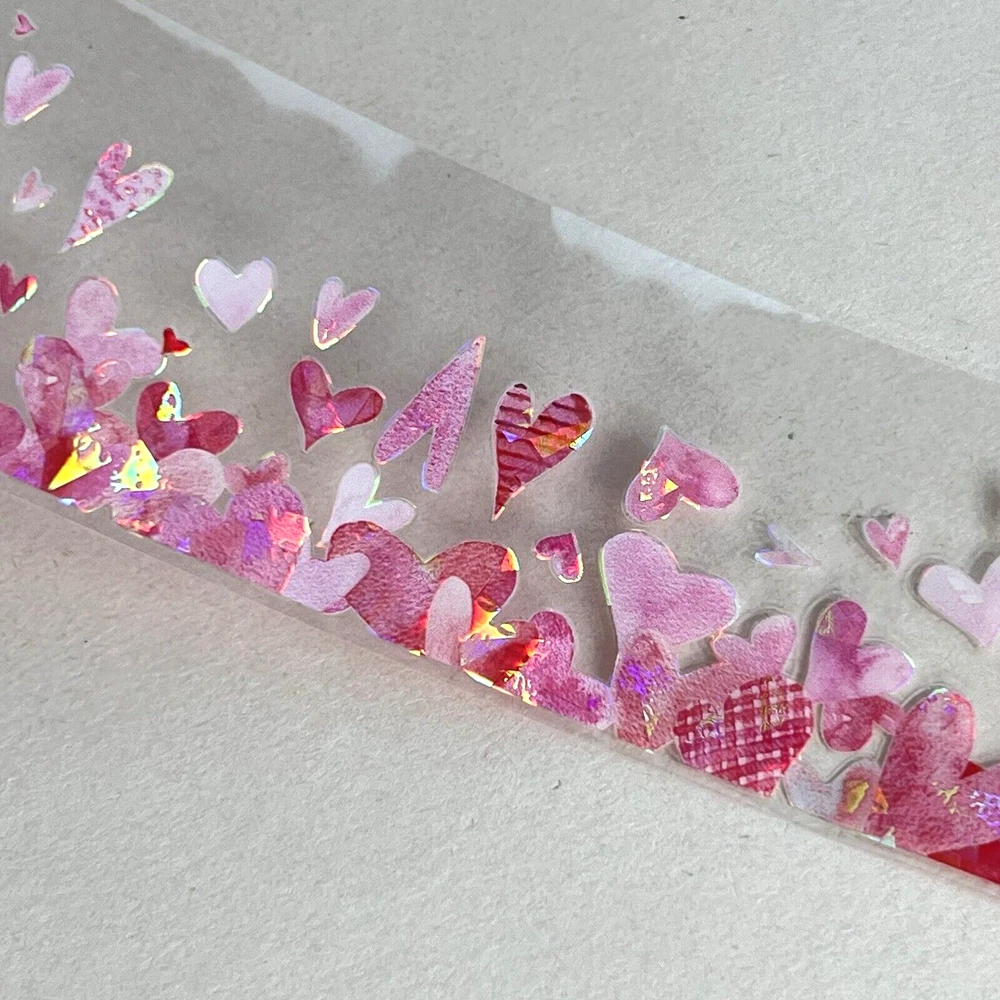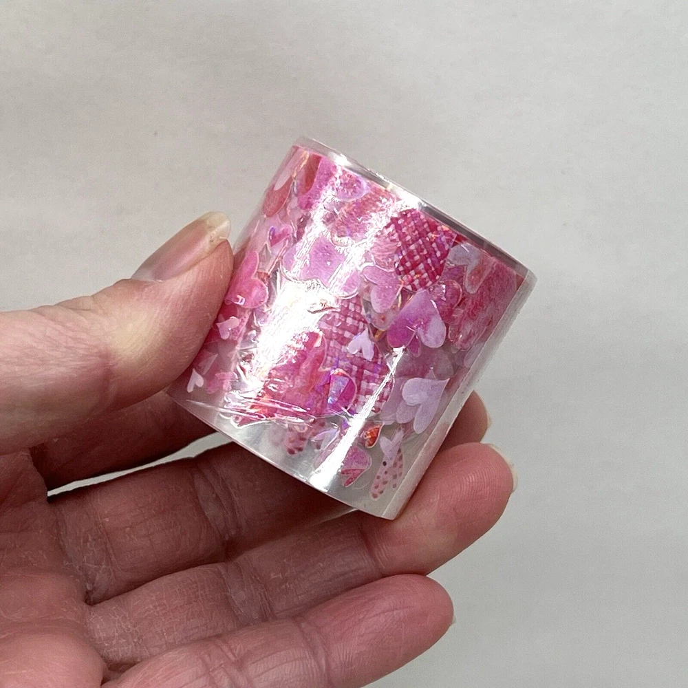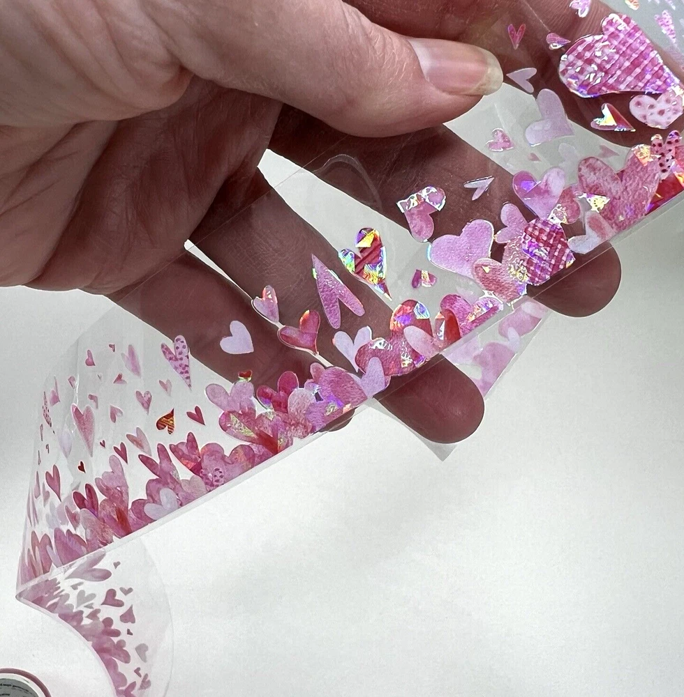 This is a clear adhesive tape with a clear peel off backing. Holographic foil accents. 5cm width X 2m length. I have more stickers, washi tape and paper for sale. I do combine shipping. Please put all the items you want to purchase in ONE cart and then pay. I will refund you the difference in shipping after shipping label is printed. Let me know if you have any questions through eBay messaging. Thank you for stopping by!