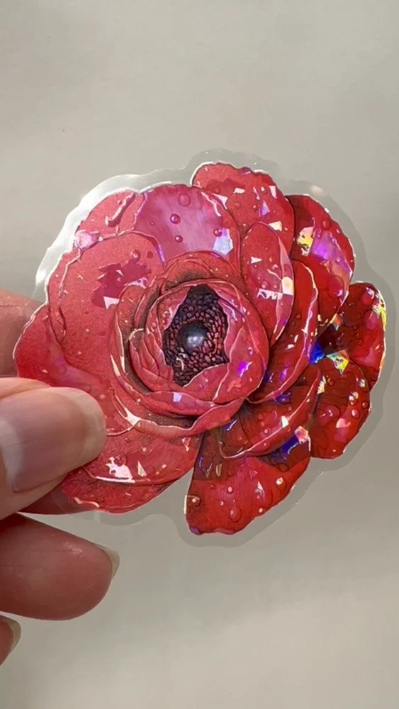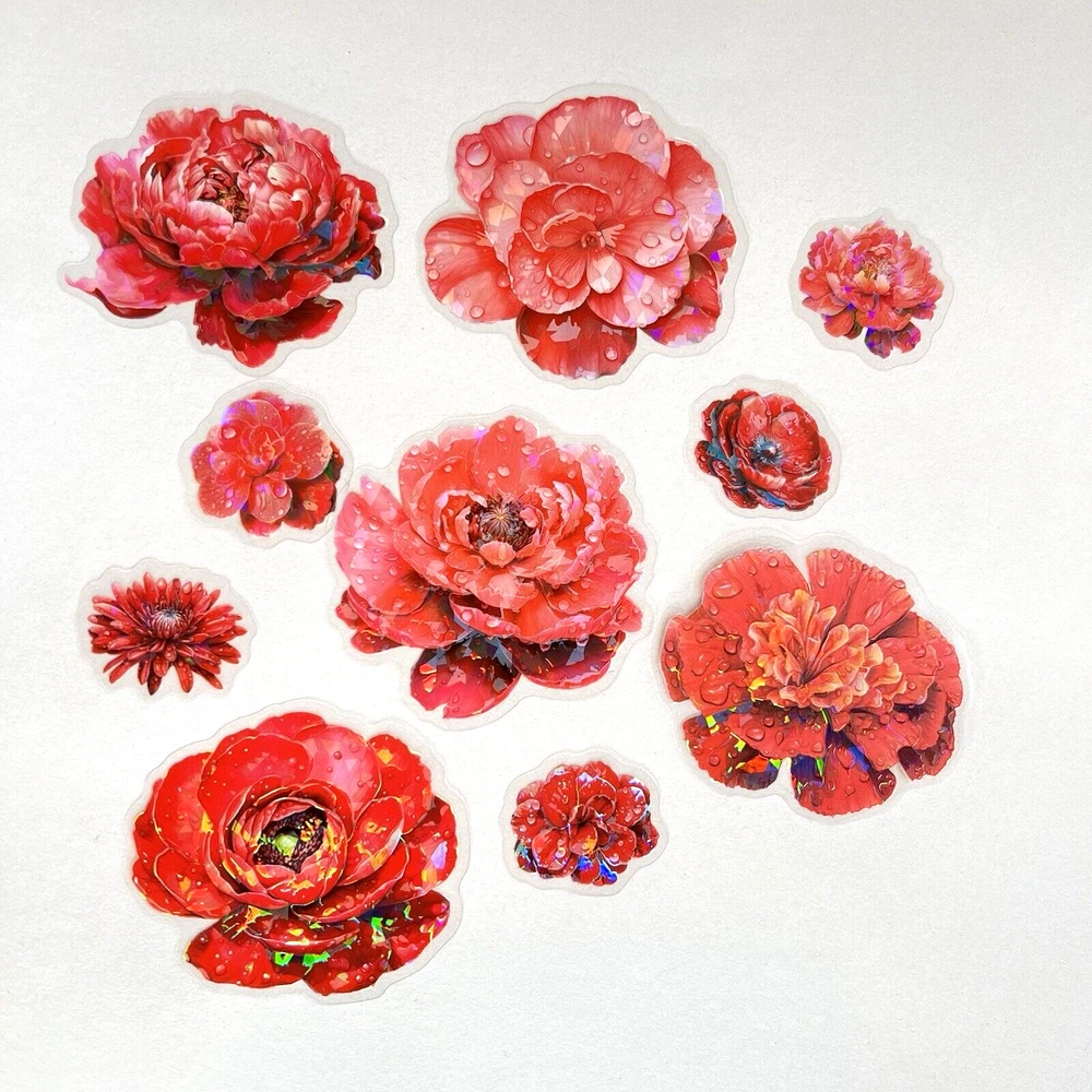 Holographic Red Pink Flower Stickers Valentine's Junk Journals Collage Scrapbook