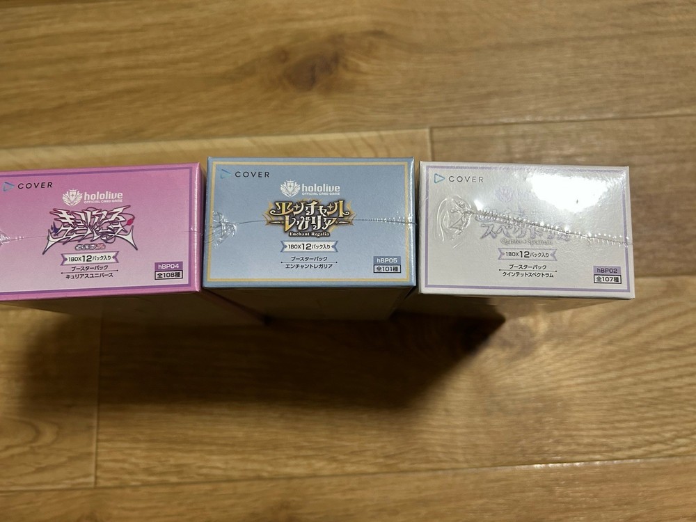 Hololive Official TCG Enchanted Regalia, Curious Universe, Quintet Spectrum Set Description (Reprint) It's a Set of 3 boxes We will use outer package to protect the case. Payment We will ship by FedEx International Priority It takes 1-3 business days to ship out. Shipping -Import duties, taxes, and charges are not included in the item price or shipping charges. These charges are the buyer's responsibility.-Please check with your country's customs office to determine what these additional costs will be prior to bidding/buying.-These charges are normally collected by the delivering freight (shipping) company or when you pick the item up - do not confuse them for additional shipping charges.-We do not mark merchandise values below value or mark items as - gifts - The US and International government regulations prohibit such behavior. Terms of Sale We are located in Japan.It's our pleasure to make you happy by proposing our recommend item. If you have any questions or request about items, please feel free to ask us. International Buyers - Please Note: Import duties, taxes, and charges are not included in the item price or shipping cost. These charges are the buyer's responsibility. Please check with your country's customs office to determine what these additional costs will be prior to bidding or buying.