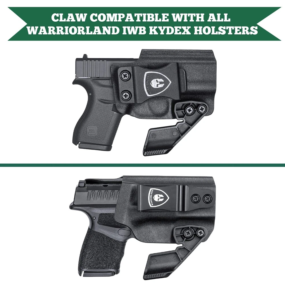 Holster Claw Kit, light Concealment Wing for IWB Holsters, Kydex Holster Claw with Hardware Kit, Right Hand Claw 【0.56’’ Spacing Holster Claw】 2 Retention Holes at 0.56" Spacing(Please noted it won’t fit 2 holes spacing more than 0.56’’ 【Avoid Printing When Carrying】 Add this holster claw kit in IWB holsters allows you to tuck the grip into the body to avoid firearm printing while carrying concealed. 【Claw Kit Included】 2 X Black Coated Phillips Screw, 2 X Black Coated Slotted Post, 4 X Washer (2xlong, 2xshort), 2 X Black Coated Washer (Please refer to the main product image 【Right Hand Only】 This Holster claw kit only made for right hand holster. 【】 We offer a , if for any reason you are unsatisfied, please feel free to our 24/7 Customer Services for , we stand behind the quality of our work!