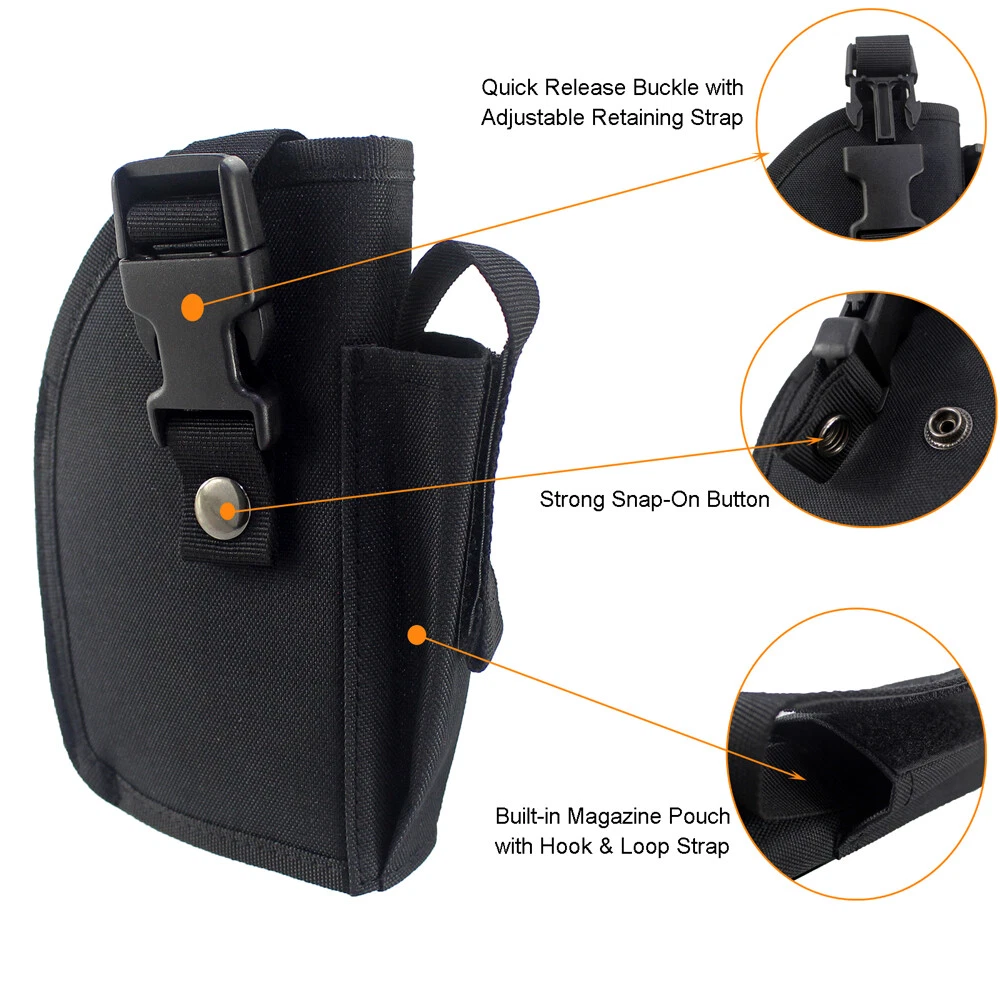 Cant: Horizontal Handedness: Right Type: Concealment Holster Country/Region of Manufacture: China Level: Level 1 Model: OWB Gun Holster Brand: Unbranded Features: belt MPN: Does Not Apply Carry Location: Belt (OWB) For Gun Type: Pistol Gauge/Caliber: 9 mm Luger, .380 ACP, .40 S&W, .45 ACP 物品状况: 全新: A brand-new,unused,unopened,undamaged item in its original pa For Gun Make: Unbranded/Generic Attachment Type: Belt, Clip Carry Position: 3 o'Clock Manufacturer Warranty: Lifetime Color: Black Number of Magazines: 1 Sport/Activity: Hunting Custom Bundle: No Material: Nylon