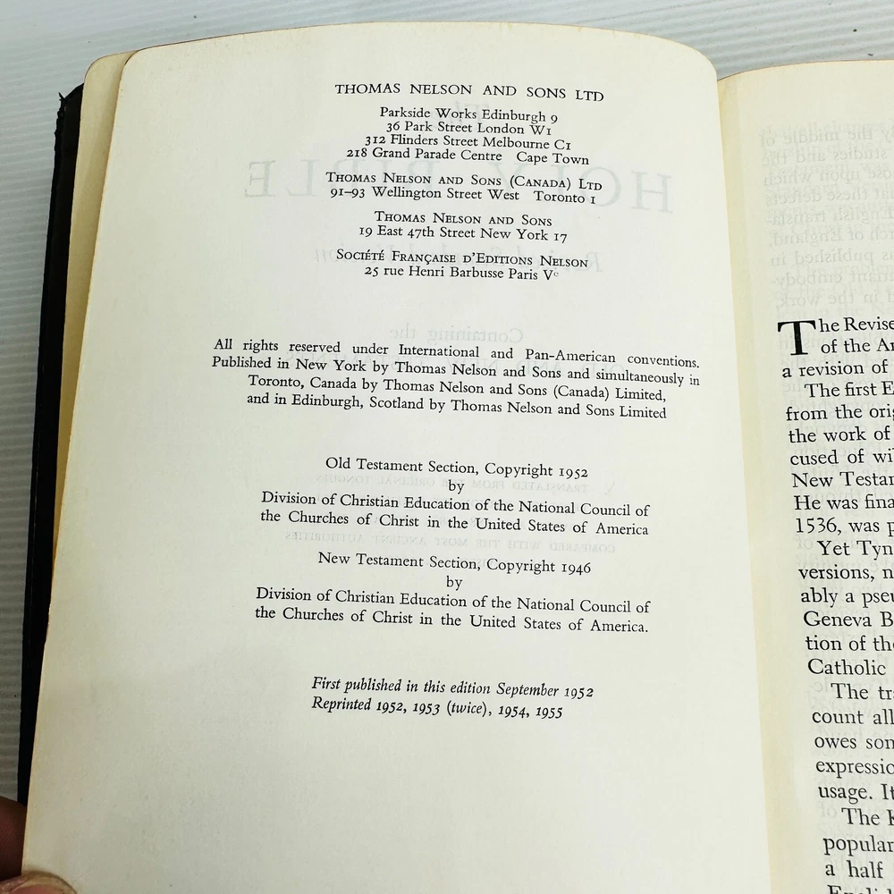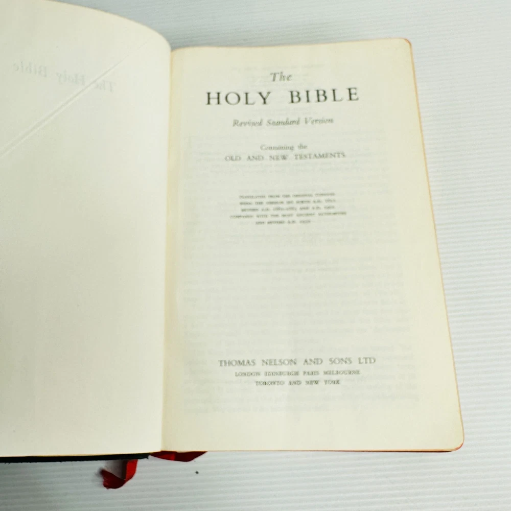 Holy Bible Revised Standard Edition Nelson Black Religion Religious 1955 Item posted within two business days of payment clearing via Australia Post. Australian seller - smoke free - pet free - working mum Adding new book listings daily to my store. My books are sent in strong Australia Post, Australian made, water resistant padded mailers that are recyclable through the REDcycle program and can be recycled at any major shopping centre. Pre-owned, good for age but well worn as per photos - see photos for condition and read the description.