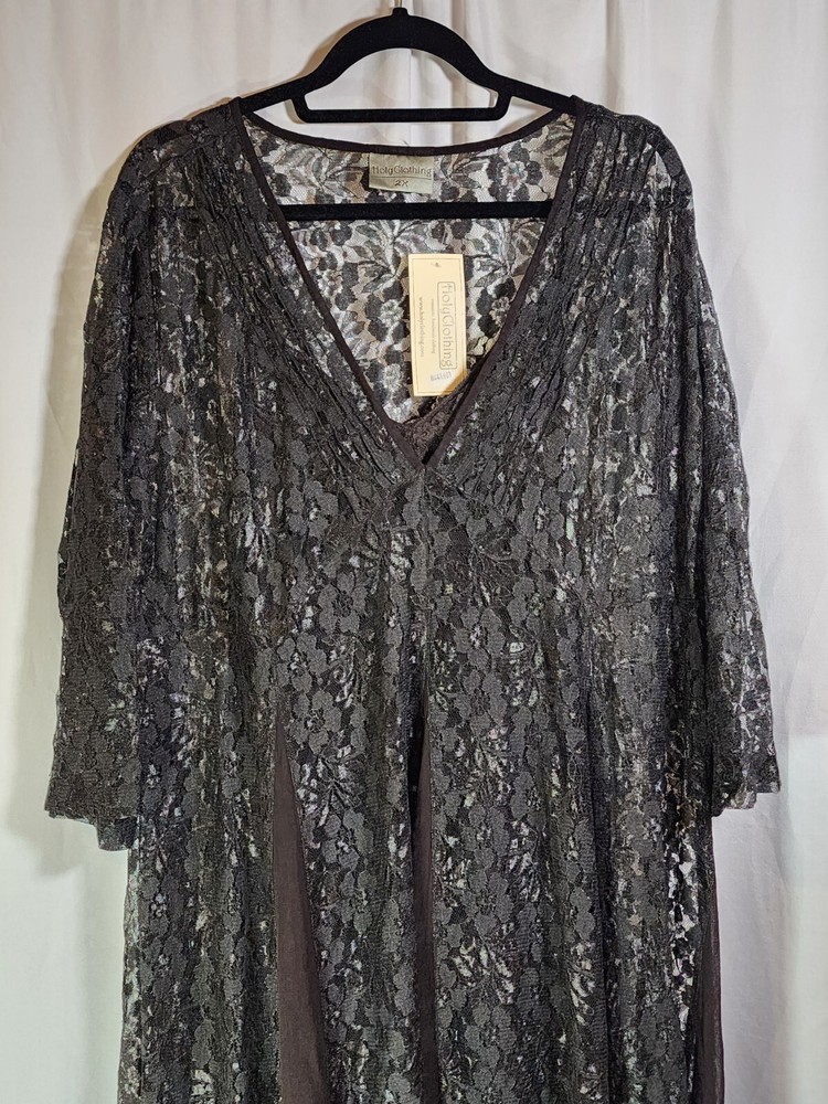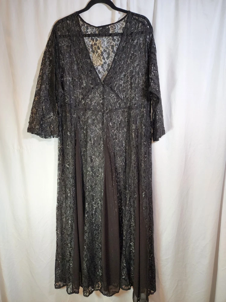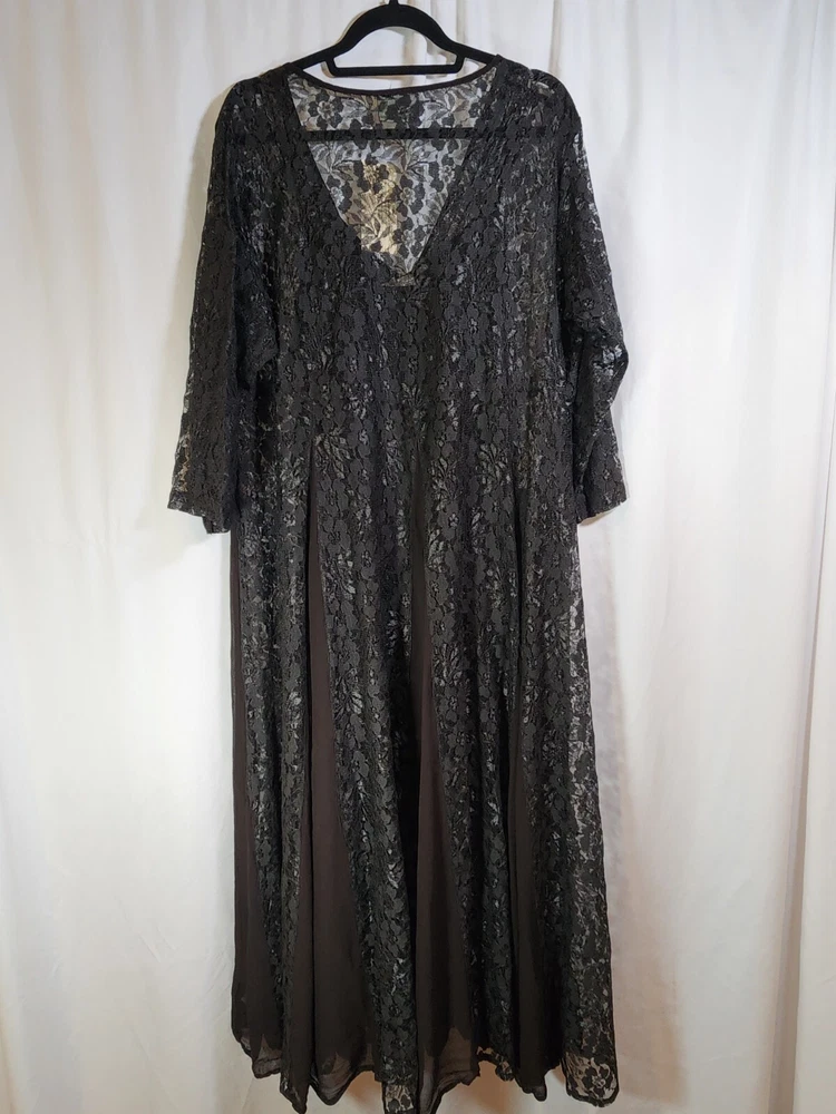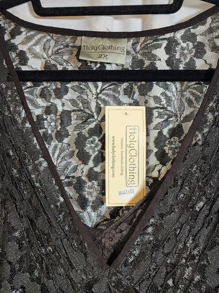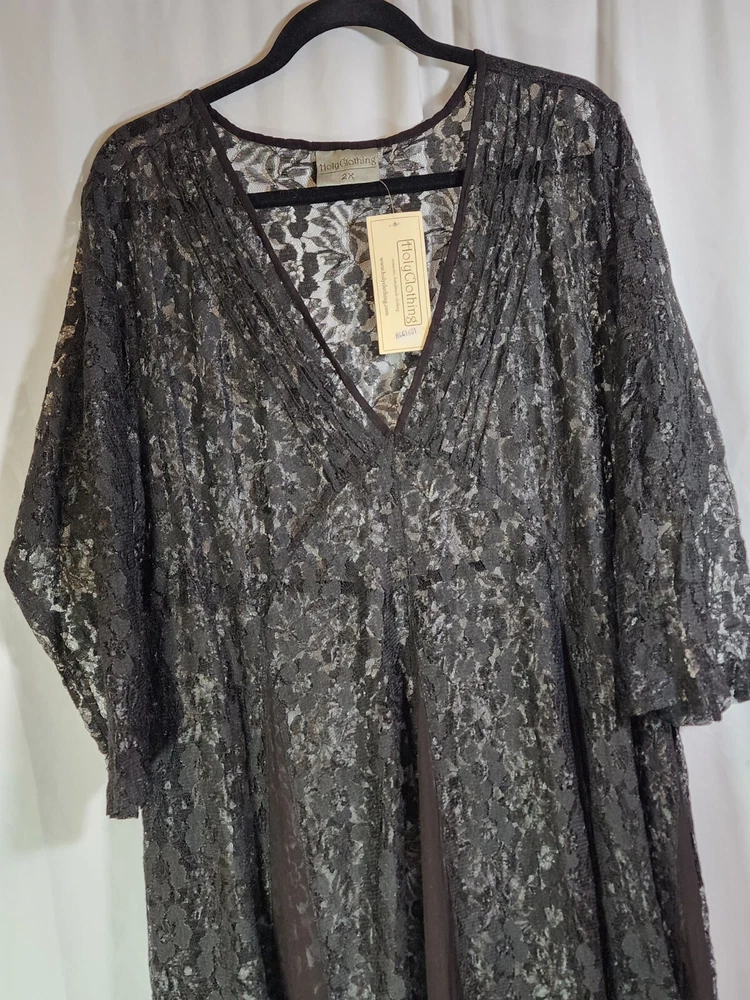 Description: Brand: Holy Clothing Condition: Brand New with Tags Style Name: Tamara Maxi Color: Black Midnight Size: Women's 2X, Regular Length Details: 100% Rayon with Nylon Floral Lace Inlays Includes Lace Overdress and separate Black Cotton Terry Voile Cami with Adjustable Straps Gothic Godet Bodice Victorian/Boho/Ren Faire/Romantic Style Flowing Silhouette Exclusive HolyClothing design. Ethically handmade in India. We are delighted to offer you this beautiful Tamara Maxi Dress. I t's part of our Holy Clothing collection of brand new items with tags. We match website pricing - and all of our Holy Clothing items are ready to ship immediately, unlike items purchased from the Holy Clothing website, which generally take 3-4 weeks to ship. This particular style is retired/discontinued and no longer available on their website, either. Please note that the photos shown are both stock photos (shown on a model), and photos of the actual item you will receive. Please review all of them and ask any questions before purchasing. We are a husband and wife team with a growing family, and we greatly appreciate your support of our small business! Please visit our eBay store to shop our Holy Clothing collection, including some retired and hard-to-find styles. We look forwarding to having you enjoy this lovely piece!