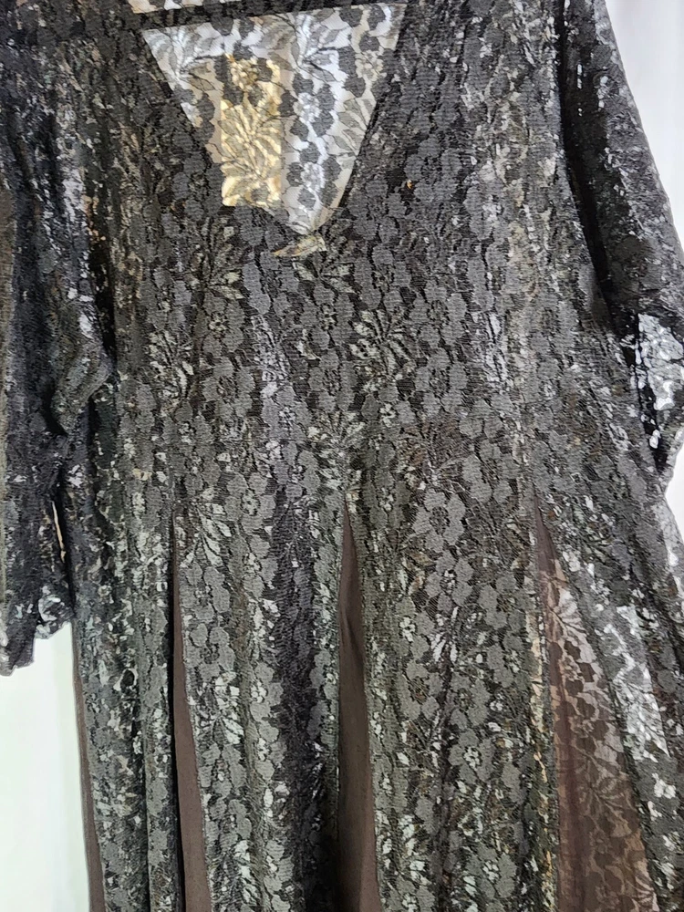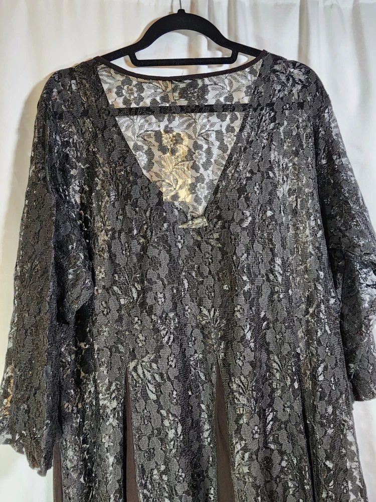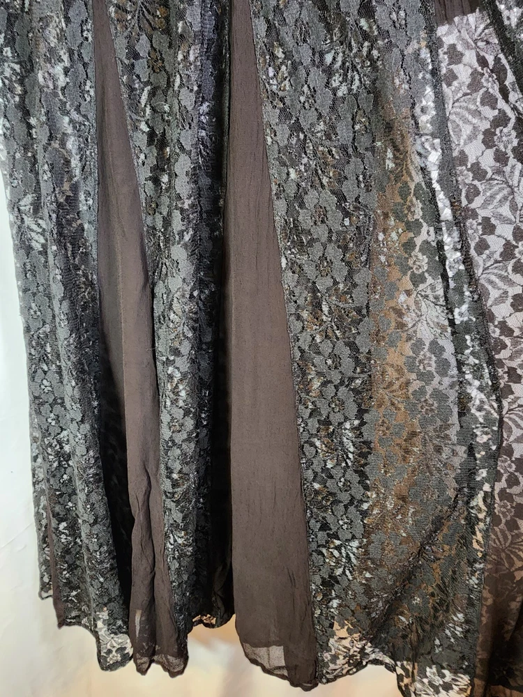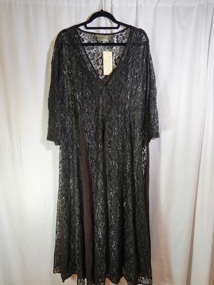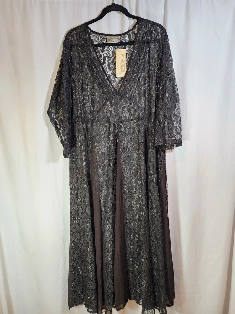 Description: Brand: Holy Clothing Condition: Brand New with Tags Style Name: Tamara Maxi Color: Black Midnight Size: Women's 2X, Regular Length Details: 100% Rayon with Nylon Floral Lace Inlays Includes Lace Overdress and separate Black Cotton Terry Voile Cami with Adjustable Straps Gothic Godet Bodice Victorian/Boho/Ren Faire/Romantic Style Flowing Silhouette Exclusive HolyClothing design. Ethically handmade in India. We are delighted to offer you this beautiful Tamara Maxi Dress. I t's part of our Holy Clothing collection of brand new items with tags. We match website pricing - and all of our Holy Clothing items are ready to ship immediately, unlike items purchased from the Holy Clothing website, which generally take 3-4 weeks to ship. This particular style is retired/discontinued and no longer available on their website, either. Please note that the photos shown are both stock photos (shown on a model), and photos of the actual item you will receive. Please review all of them and ask any questions before purchasing. We are a husband and wife team with a growing family, and we greatly appreciate your support of our small business! Please visit our eBay store to shop our Holy Clothing collection, including some retired and hard-to-find styles. We look forwarding to having you enjoy this lovely piece!