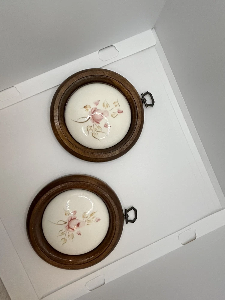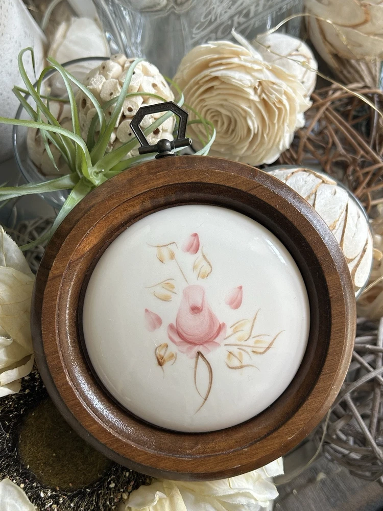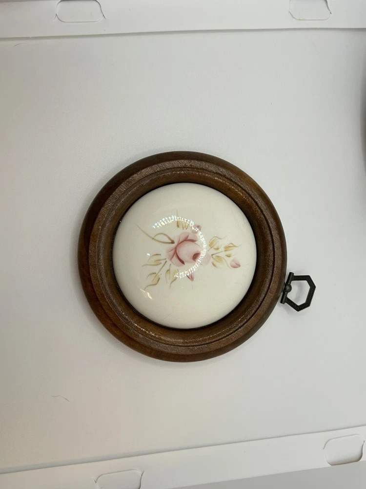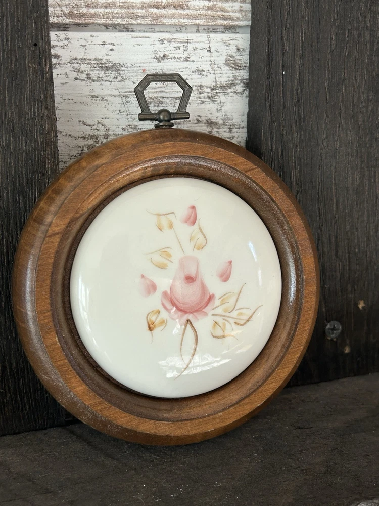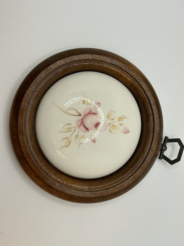This beautiful wall decor piece from Homco Lasting Products Inc is a must-have for any room in your home. The ceramic and wood combination creates a unique and decorative look that is perfect for displaying flowers, specifically roses, which are the main pattern in this piece. The glossy finish adds to its charm and the hand-painted details make it a one-of-a-kind item. Measuring at 5.25 inches in height and width, this small round wall decor is perfect for any adult room. It is a vintage item made in the United States and can be mounted on the wall. Its style is perfect for the floral theme it embodies, making it a perfect addition to your home decor collection.