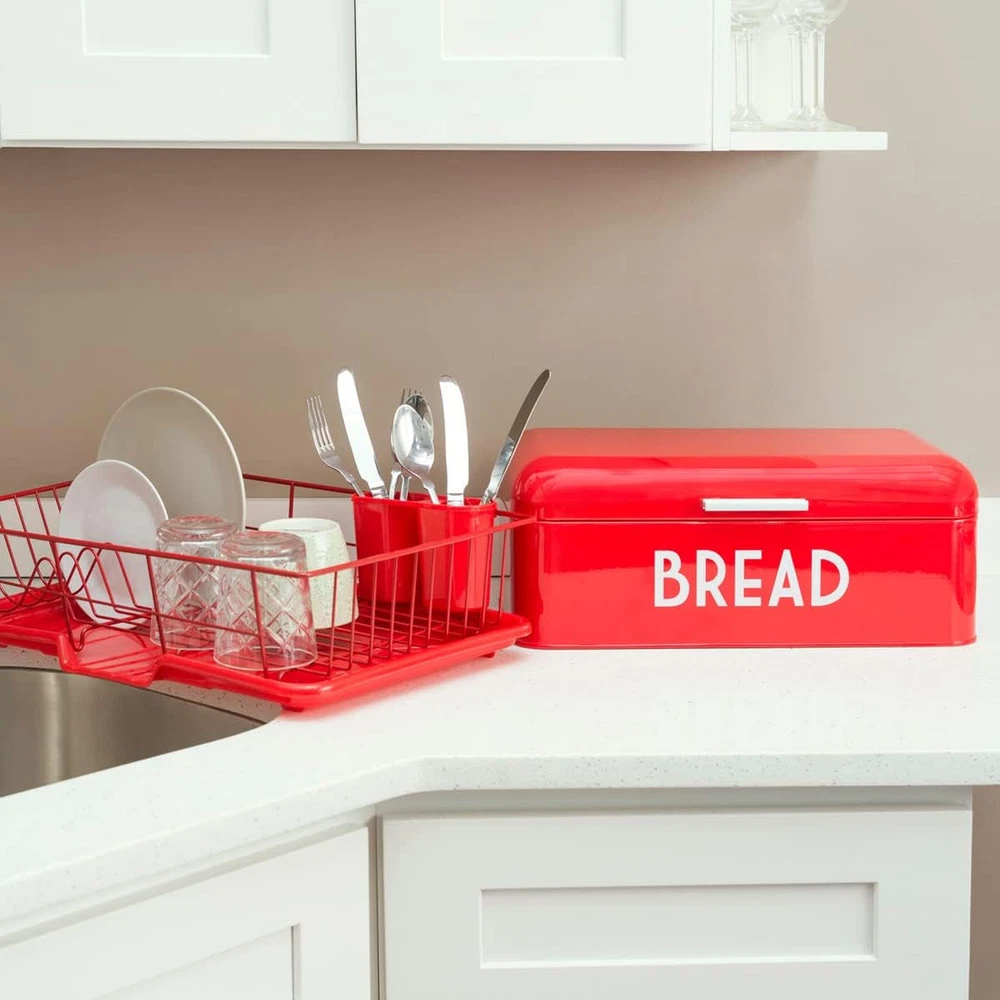 Home Basics Grove Bread Box For Kitchen Counter Dry Food Storage Red